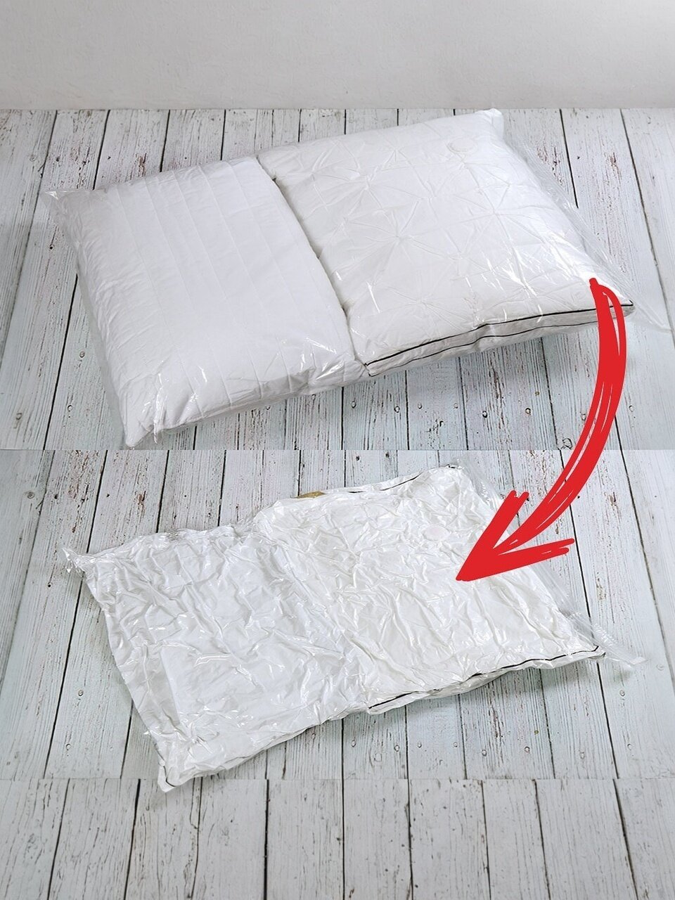 Вакуумный пакет поможет сэкономить до 70% места в вашем шкафу! Идеально подходит для компактного хранения одежды и постельных принадлежностей. Защищает их от пыли, грязи, сырости и неприятных запахов. Совместим со всеми моделями пылесосов, с помощью которых можно быстро и легко выкачать лишний воздух из вакуумного пакета.