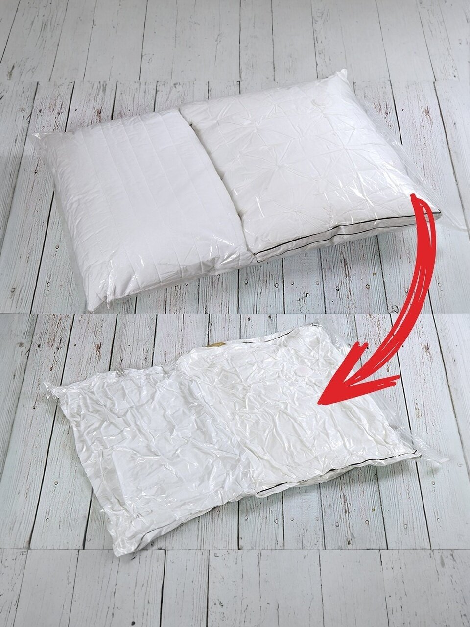 Вакуумный пакет поможет сэкономить до 70% места в вашем шкафу! Идеально подходит для компактного хранения одежды и постельных принадлежностей. Защищает их от пыли, грязи, сырости и неприятных запахов. Совместим со всеми моделями пылесосов, с помощью которых можно быстро и легко выкачать лишний воздух из вакуумного пакета.