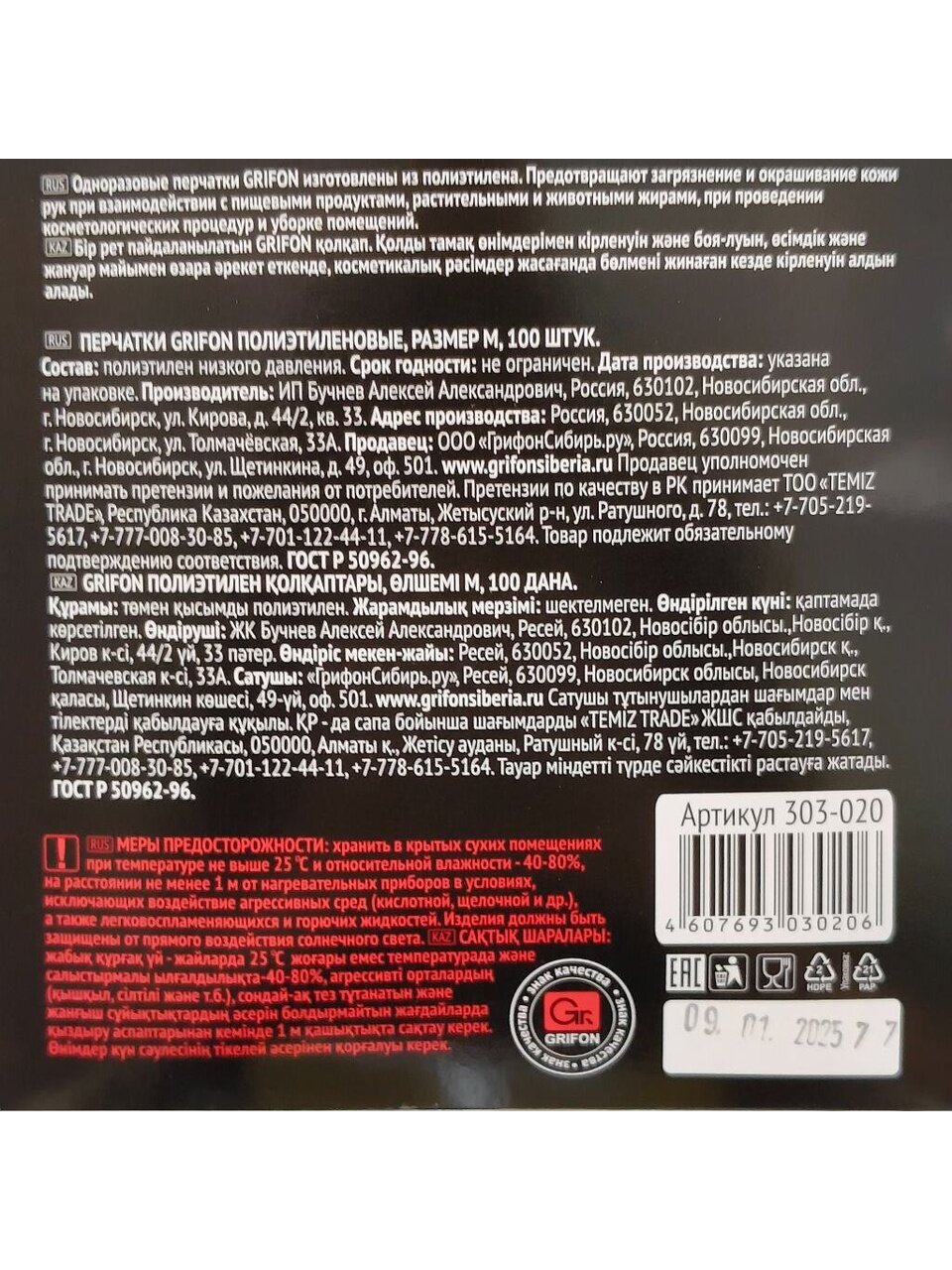 Вы можете приобрести «Перчатки одноразовые полиэтилен, размер M, 100 шт, Grifon, 303-018/020» и другие товары в нашем интернет-магазине в Клинцах по низким ценам и с бесплатным самовывозом.