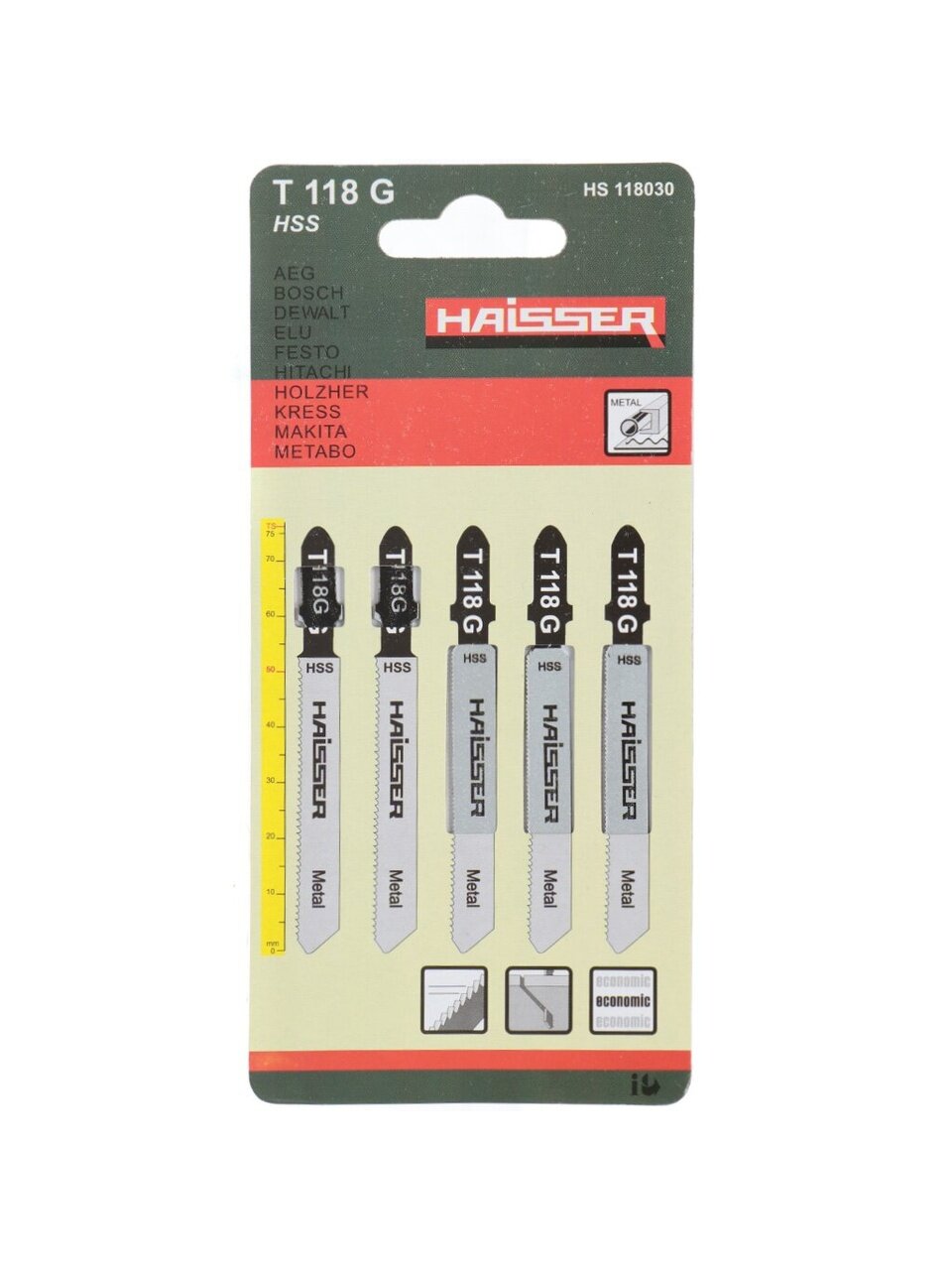 Пилки Haisser HS118030 подходят для работы с электролобзиками AEG, Bosch, Dewalt, Festo, Hitachi, Holzher, Kress, Makita, Metabo и других марок. Пилки предназначены для разрезания тонкой стали, алюминия и цветных металлов.