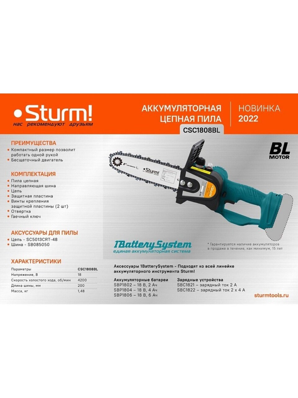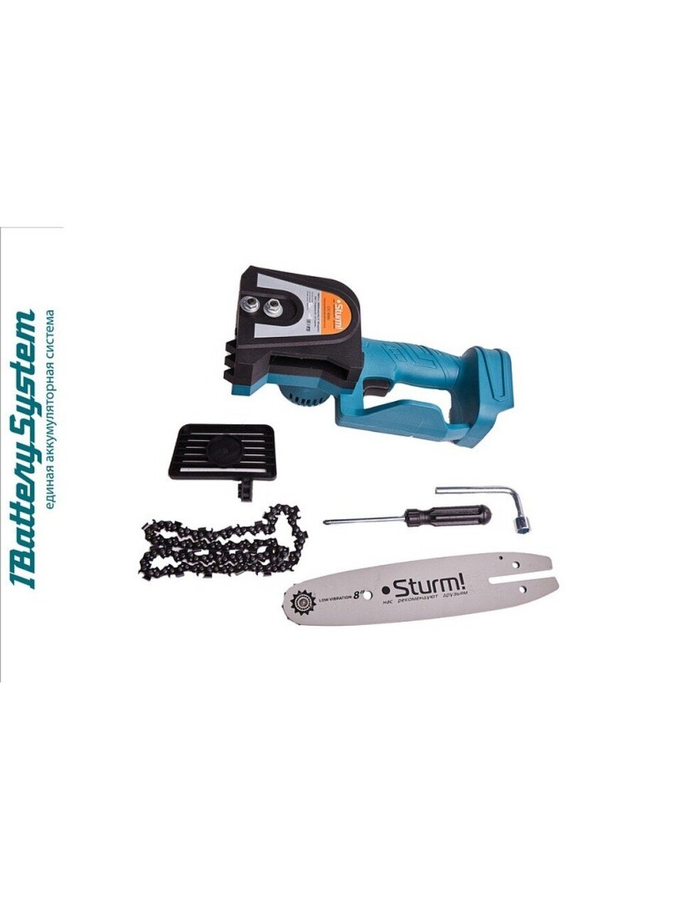Вы можете приобрести «Пила цепная электрическая, аккумуляторная, Sturm, длина шины 20 см, шаг цепи 1/4 дюйм, 48 звеньев, без АКБ и ЗУ» и другие товары в нашем интернет-магазине в Старом Осколе по низким ценам и с бесплатным самовывозом.