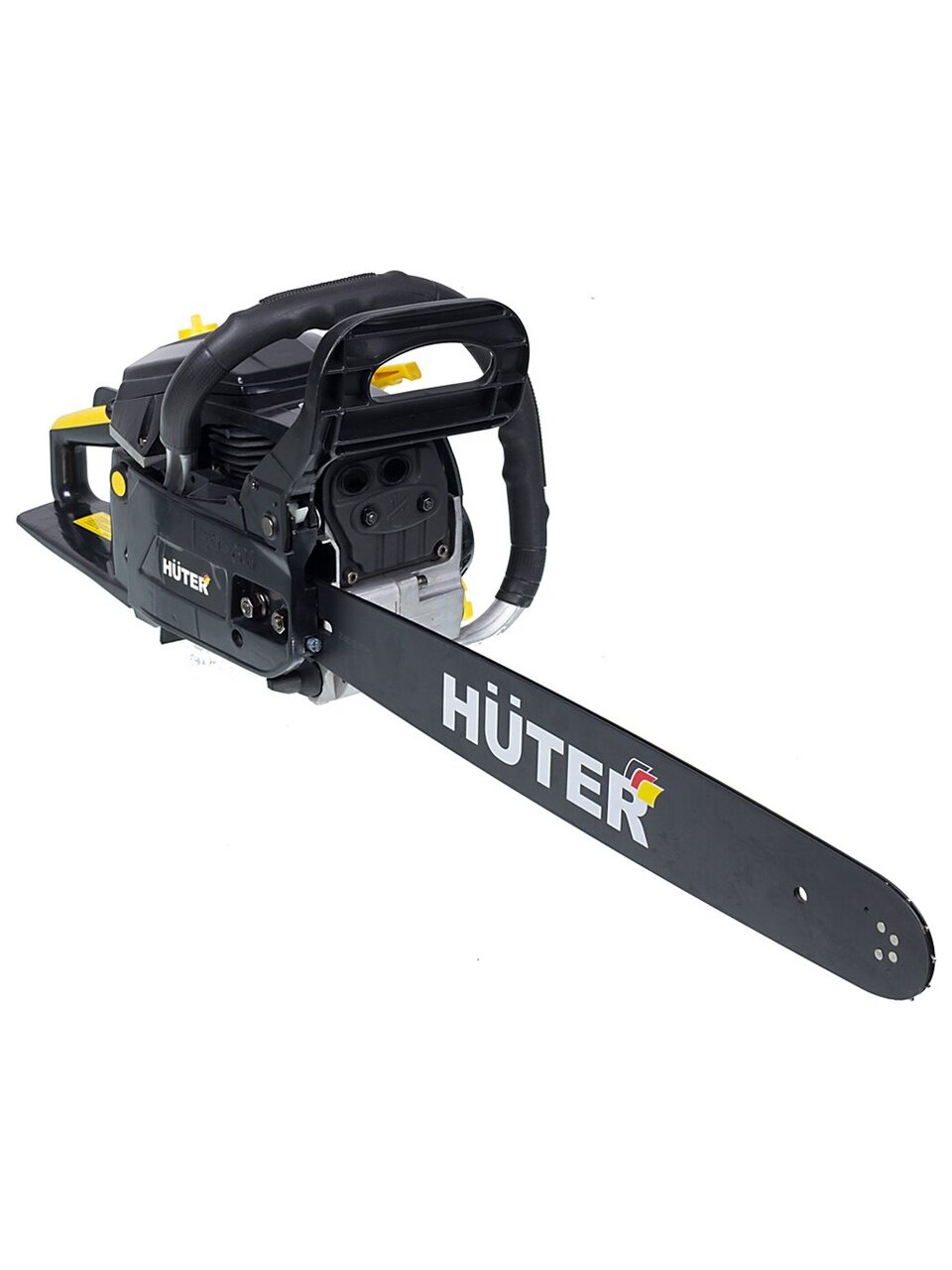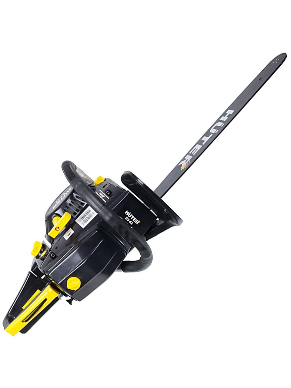 Бензопила HUTER BS-62 является довольно мощным ручным инструментом, способным распиливать древесину любого типа в любом направлении. Устройство оснащено металлической шиной, длиной 50 см с пильной цепью и автоматической смазкой, системой гашения вибрации, тормозом для мгновенной остановки цепи, защитным щитком, фиксатором клавиши «газа», а также двухтактным одноцилиндровым двигателем внутреннего сгорания с воздушным охлаждением и ручным запуском, приводящим пилу в действие. Этот двигатель имеет рабочий объем 58 см3. На него установлен легкосъемный фильтр. В качестве топлива используется специально приготовленная двухтактная смесь, состоящая из масла и бензина из расчета 1:25. Емкость бачка для топливной смеси – 560 мл. Крепкая поперечная рукоять, опоясывающая переднюю часть корпуса, удобна для захвата и удержания инструмента, снаряженный вес которого около 7,5 кг, в любом удобном для пользователя положении. Рукоять для второй руки расположенная в задней части корпуса, имеет продольное расположение и служит одновременно пультом управления бензопилой.