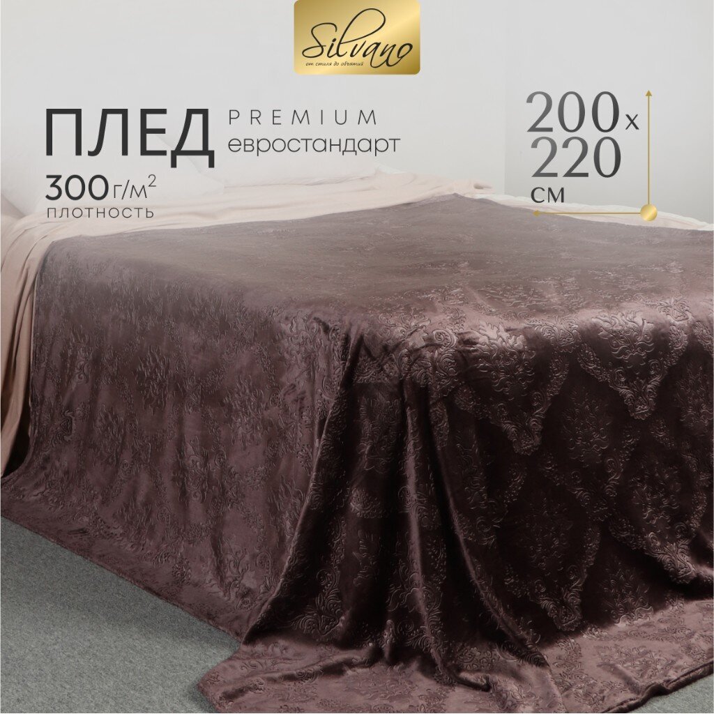 Плед евро 200х220 см Silvano Fresco: мягкий велсофт жаккард, уют и тепло для спальни и гостиной по выгодной цене.