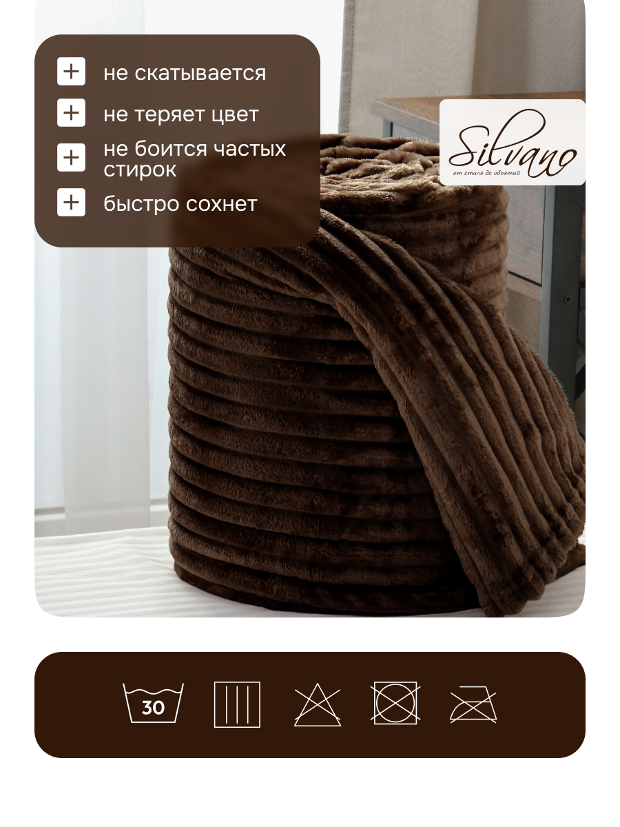 Плед евро Silvano Неаполь 200x240 см, микрофибра, шоколад: уют и тепло для дома и дачи по доступной цене — идеальный выбор для подарка и повседневного использования.