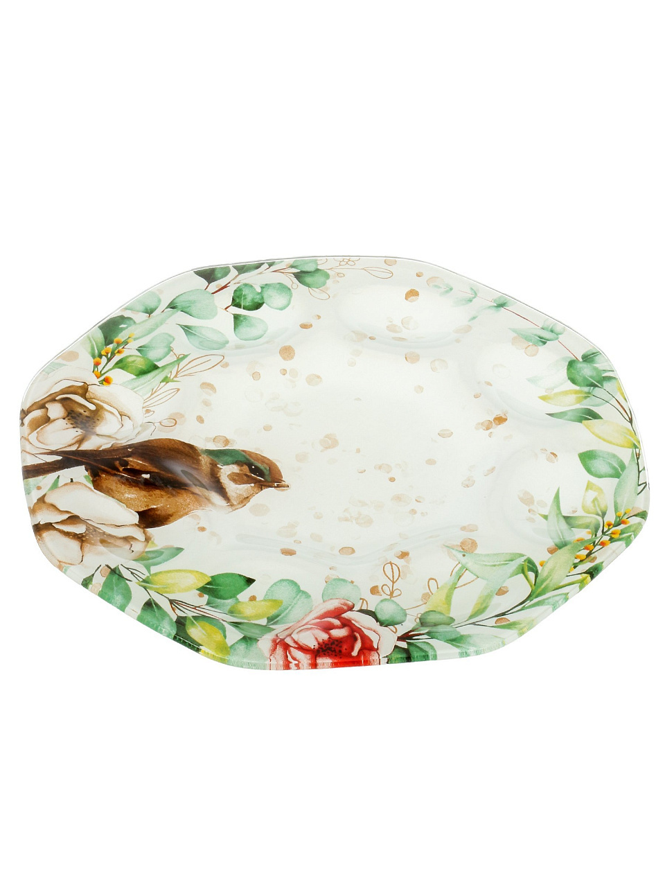 Обратите внимание на материал (стекло безопасно и долговечно), количество ячеек (8 штук оптимально для семьи), размеры (22х22х1 см), а также дизайн — фигурная форма с птичкой отлично подходит для праздничной сервировки.