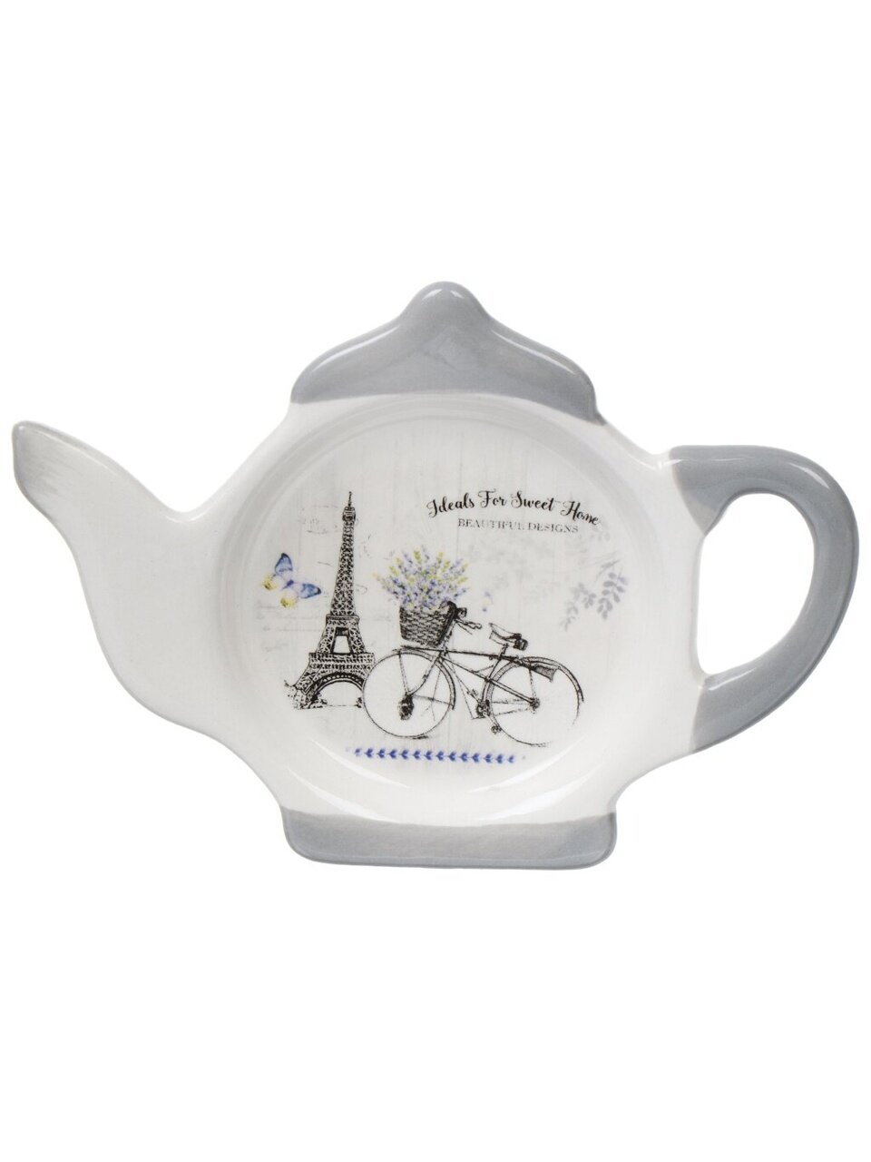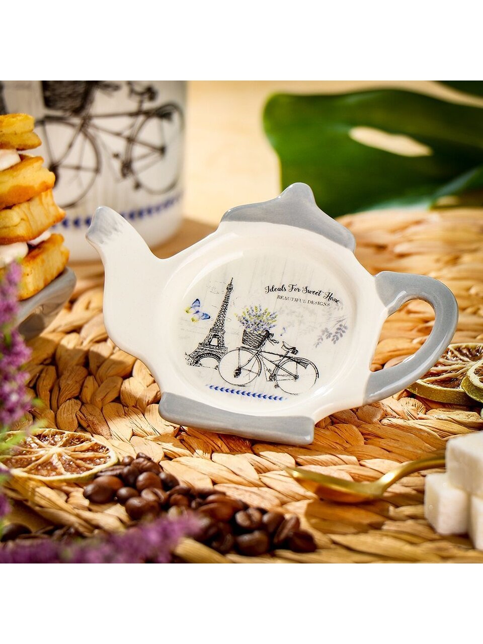 Подставка для чайных пакетиков изготовлена из высококачественной керамики, она порадует вас оригинальностью и дизайном, а также поможет сохранить чистоту столешницы. Подставка выполнена в форме чайничка и оформлена рисунком.