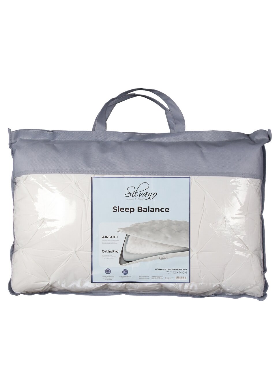 - Оптимальный размер 70×42 см, натуральный чехол из 100% хлопка, срок службы — до 5 лет