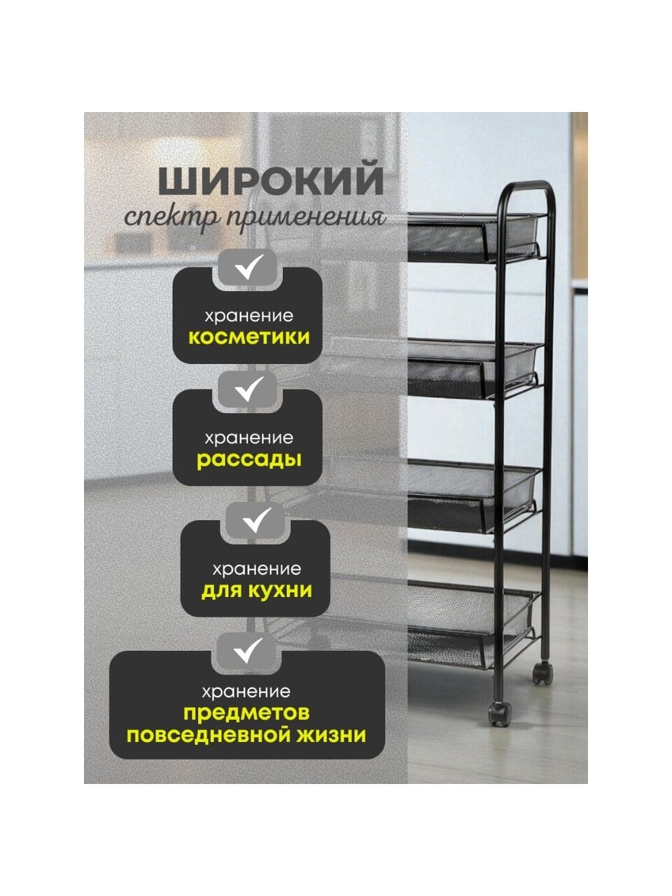 Покупка этой универсальной этажерки принесет множество преимуществ. Она поможет организовать пространство, сделает его более функциональным и аккуратным. Благодаря мобильности и компактности, этажерка легко впишется в интерьер любого помещения, добавив ему изящества и порядка. Стальной каркас обеспечивает прочность и долговечность изделия, а вентилируемые корзины сохранят свежесть и чистоту хранимых предметов. Это идеальное решение для тех, кто ценит комфорт и стиль в каждой детали своего дома.
