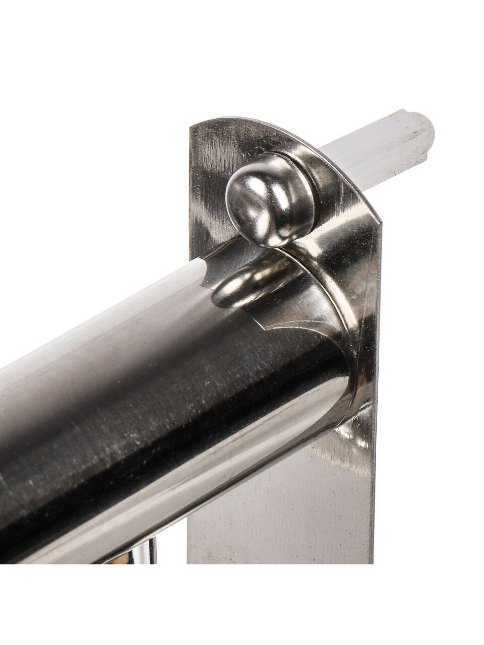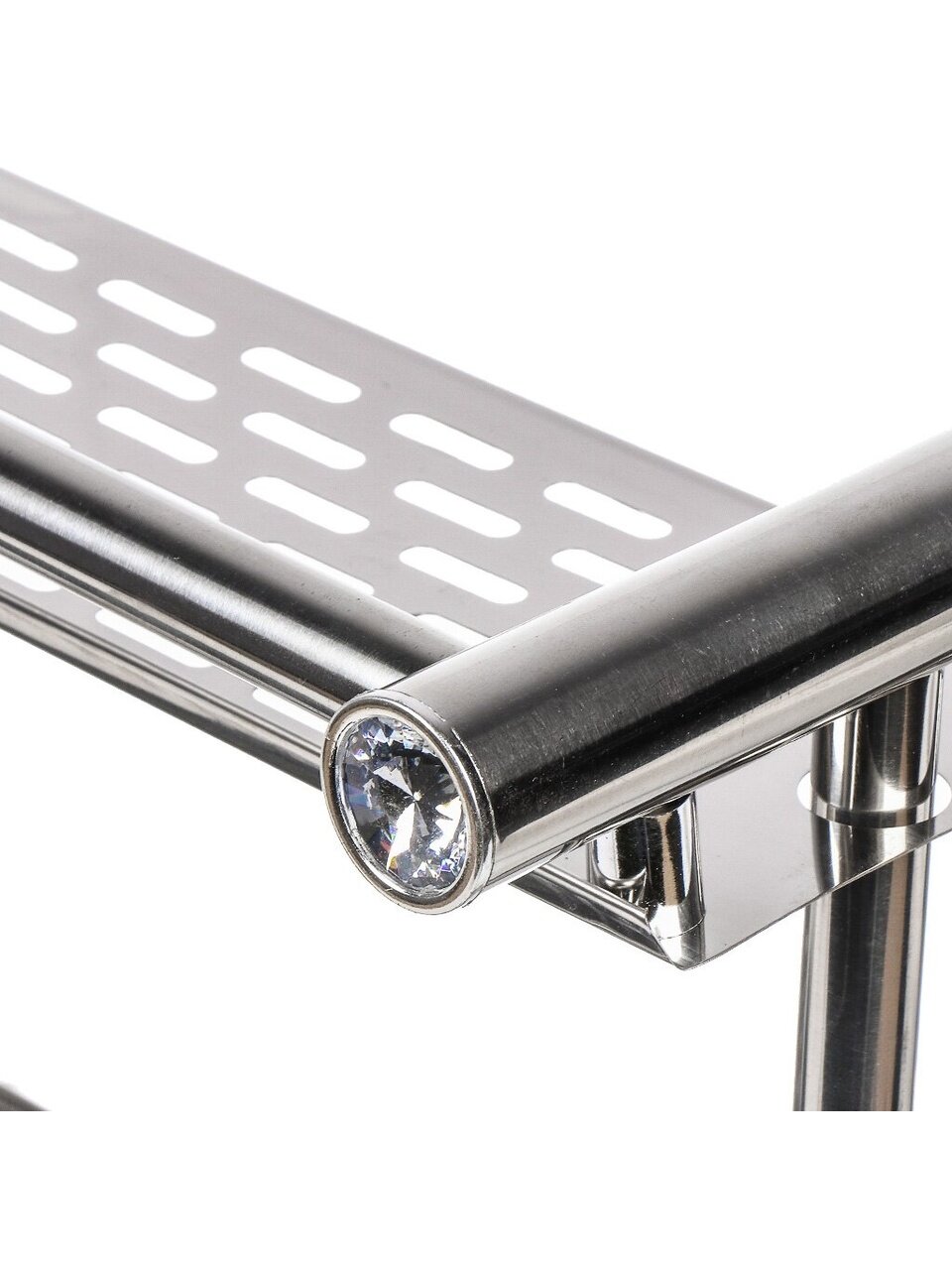 Изготовленная из прочной нержавеющей стали, полка отличается высокой устойчивостью к влаге и коррозии, что особенно важно для помещений с повышенной влажностью. Хромированное покрытие придает изделию зеркальный блеск и облегчает уход: достаточно протереть поверхность влажной салфеткой, чтобы сохранить безупречный внешний вид. Размер 60 см позволяет разместить значительное количество предметов, не загромождая пространство. Прямая конструкция обеспечивает легкий доступ к содержимому, делая ежедневное использование максимально комфортным.