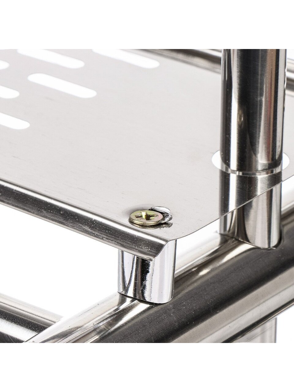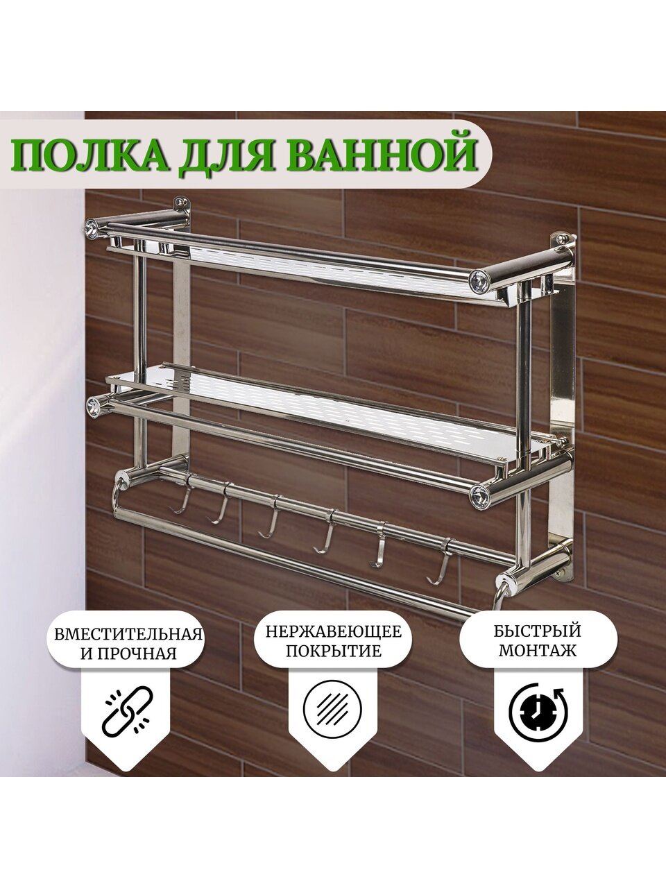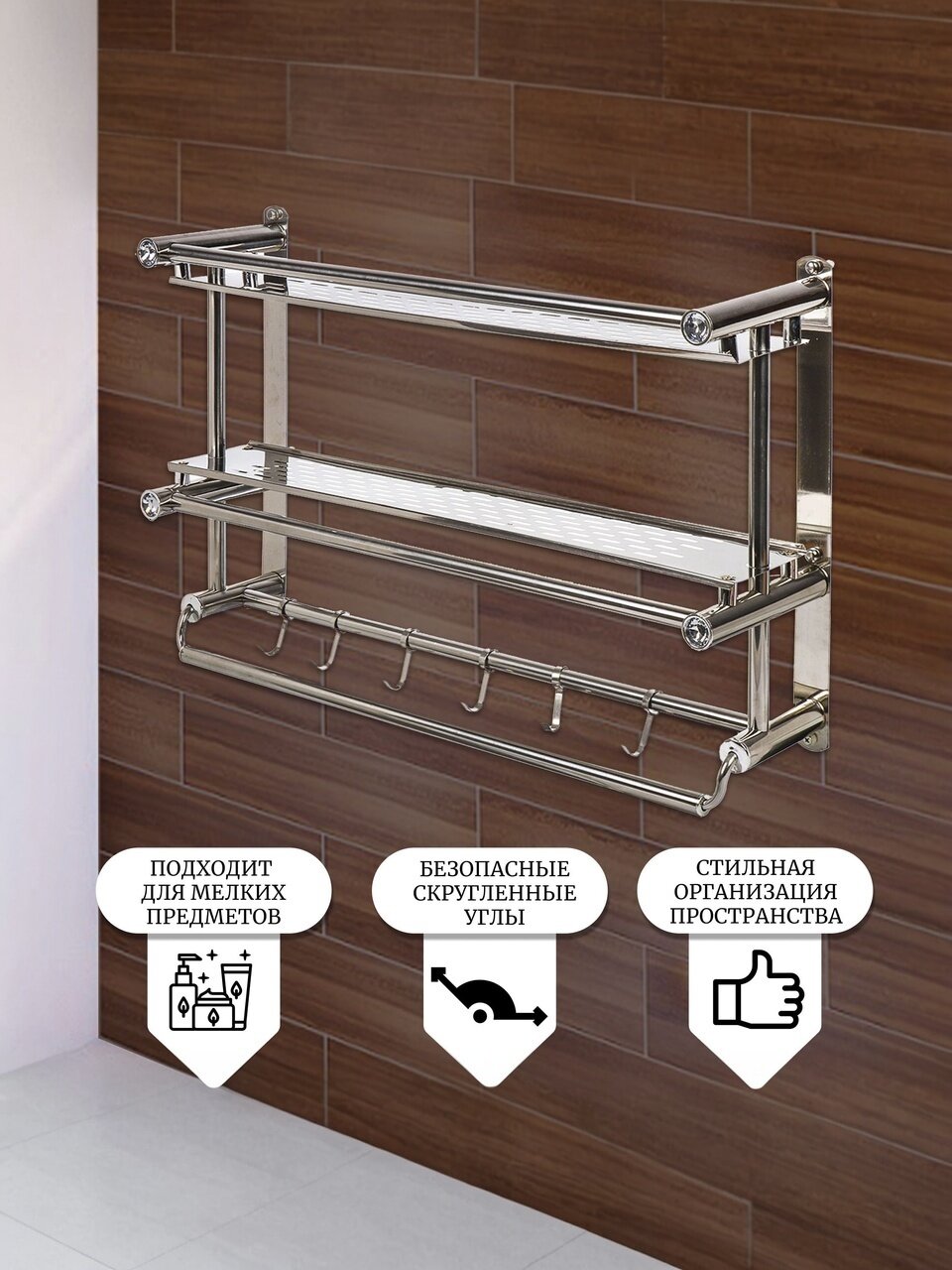 Полка для ванной из нержавеющей стали, настенная, 3 яруса, прямая, 60 см — идеальное решение для организации пространства в ванной комнате. Современный дизайн в хромированном исполнении гармонично впишется в любой интерьер, придавая ему стиль и аккуратность. Благодаря продуманной конструкции из трех ярусов появляется возможность удобно разместить все необходимые принадлежности: шампуни, гели, мыло, аксессуары для ухода и другие мелочи. Такая полка способствует поддержанию порядка и чистоты, освобождая место на раковине и бортиках ванны.