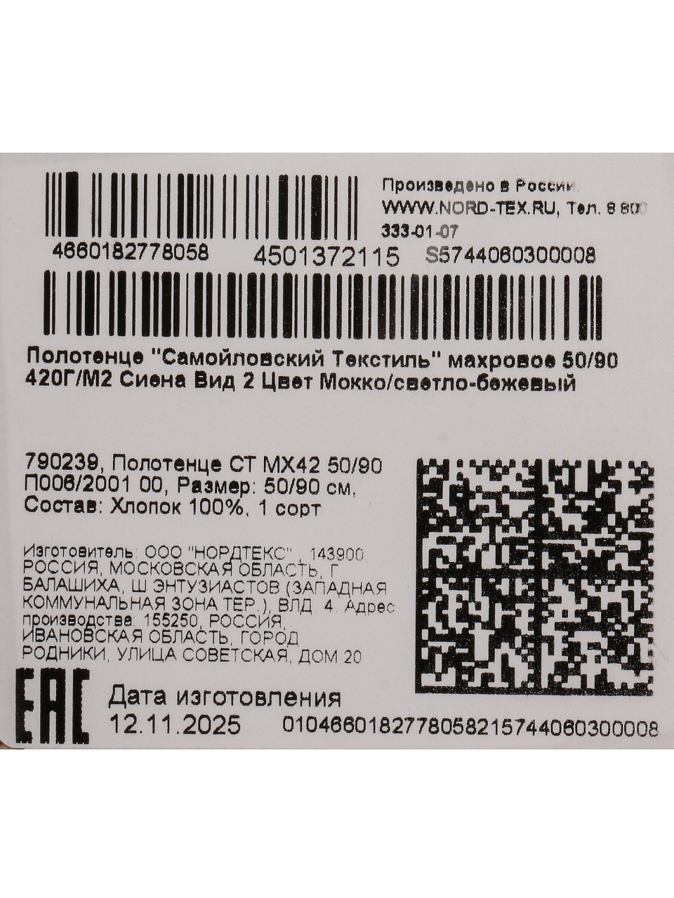 Вы можете приобрести «Полотенце банное 50х90 см, 100% хлопок, 420 г/м2, Сиена, Вид 2, Самойловский текстиль, мокко/светло-бежевое, Россия» и другие товары в нашем интернет-магазине в Смоленске по низким ценам и с бесплатным самовывозом.