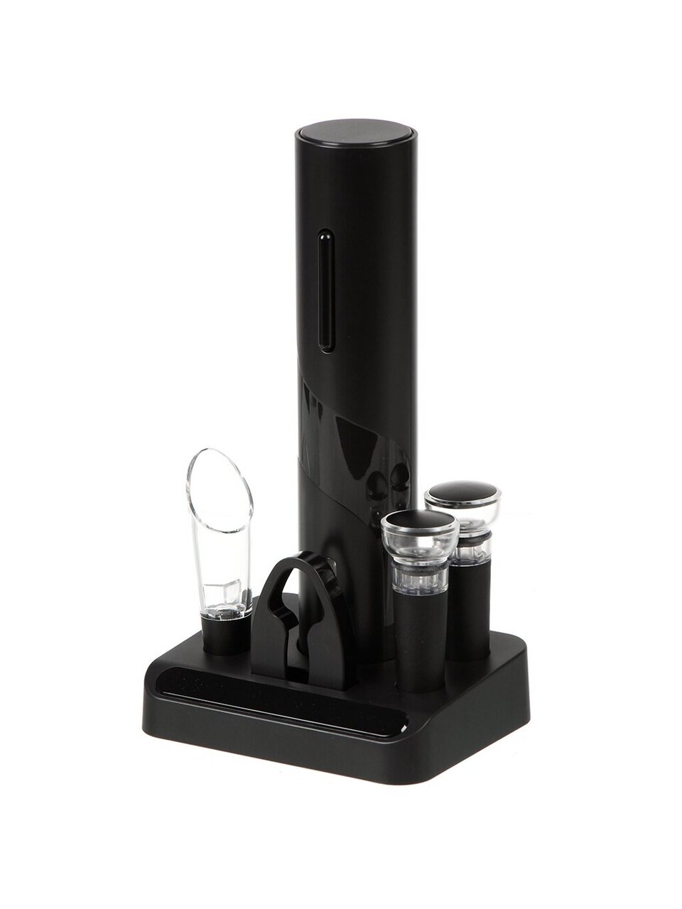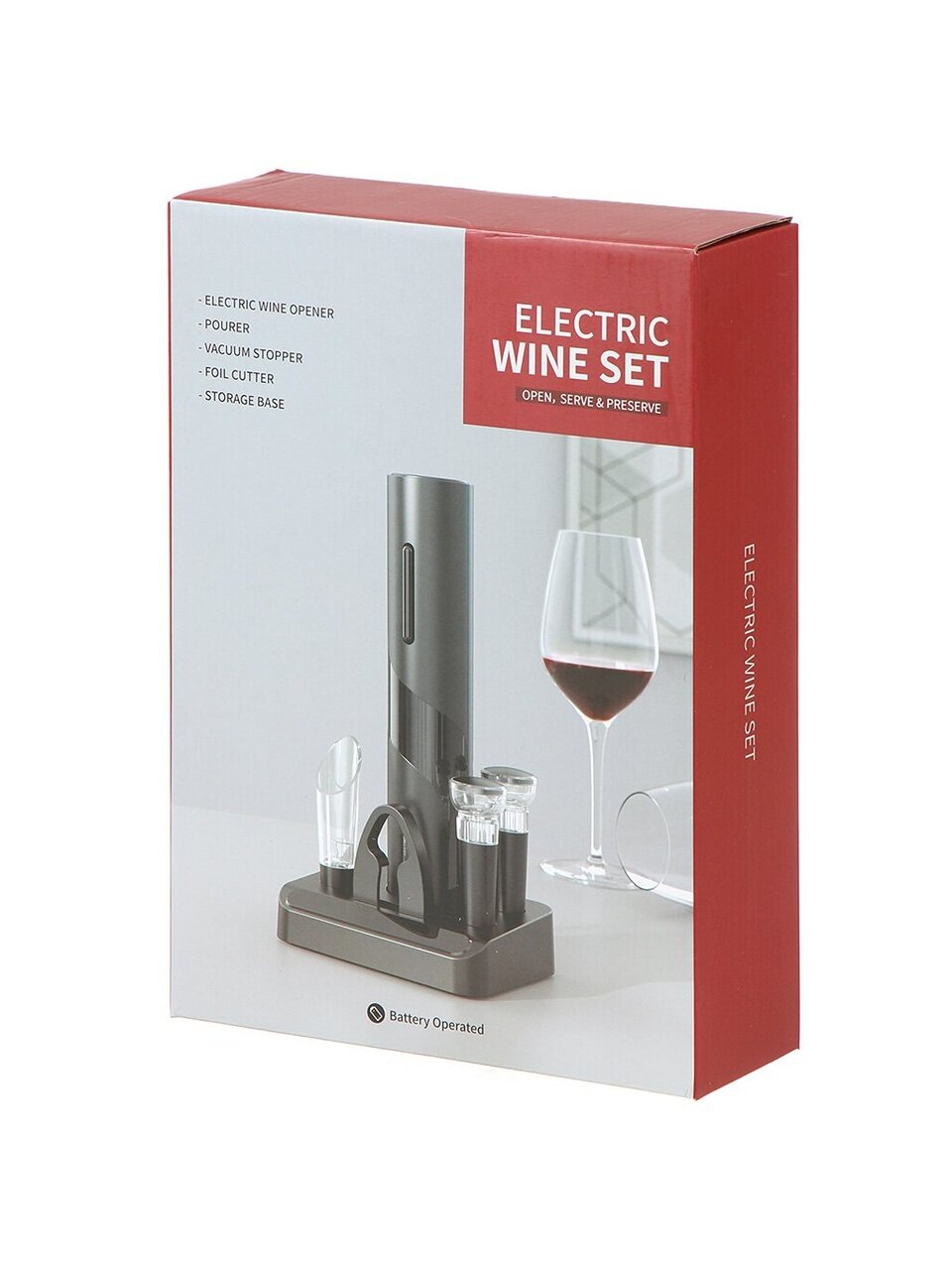 Винный набор Y4-8844 отличается своей практичностью и элегантностью. Высота набора составляет 23 см, что позволяет ему гармонично вписываться в любое пространство, а компактная подставка размером 4.8 см обеспечивает удобство хранения и использования. Электрическая функция открывания бутылок делает процесс быстрым и легким, избавляя от необходимости прикладывать усилия. Это особенно ценно для тех, кто ценит комфорт и экономию времени.