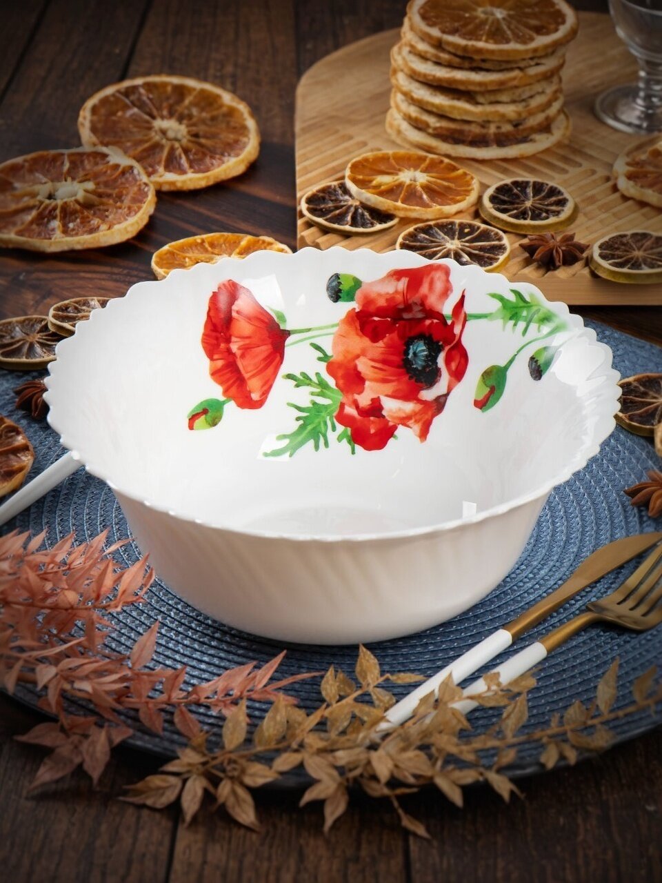 Салатник из стеклокерамики Daniks "Алый мак" 23×9 см, 2 л — стильный выбор для сервировки, устойчив к царапинам, подходит для СВЧ и посудомоечной машины.