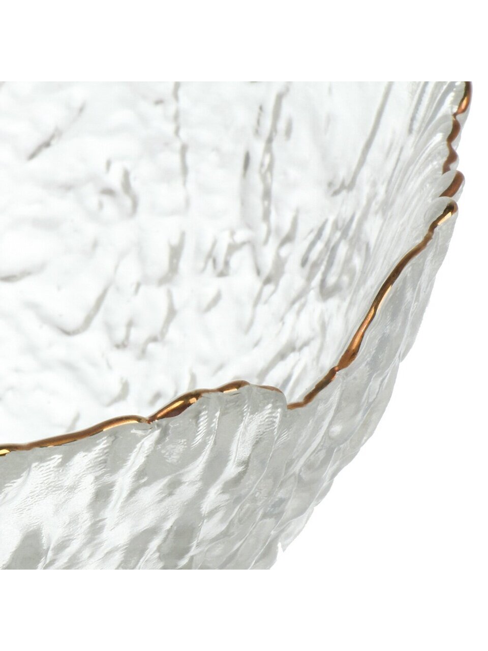 - Уникальный дизайн: фигурная форма и золотая окантовка придают салатнику премиальный вид, выделяя его среди обычных стеклянных мисок.