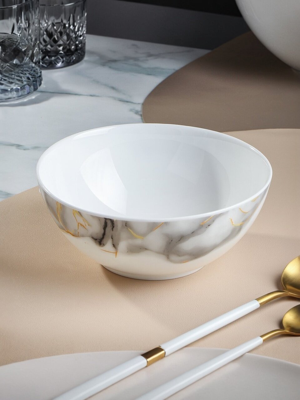 Салатник Daniks Флюид из стеклокерамики: стильный выбор для сервировки и хранения, подходит для СВЧ и посудомоечной машины. Объем 0,95 л, диаметр 18 см.