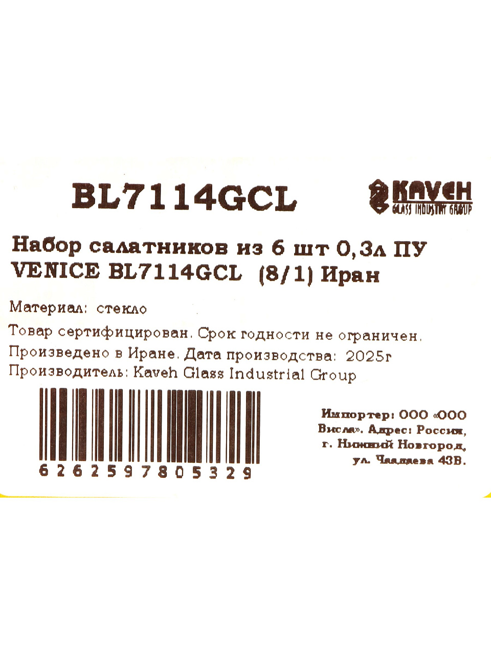 Вы можете приобрести «Набор салатников стекло, 6 шт, 0.3 л, 13х13х4.5 см, Venice, Kaveh, BL7114GCL» и другие товары в нашем интернет-магазине в Смоленске по низким ценам и с бесплатным самовывозом.