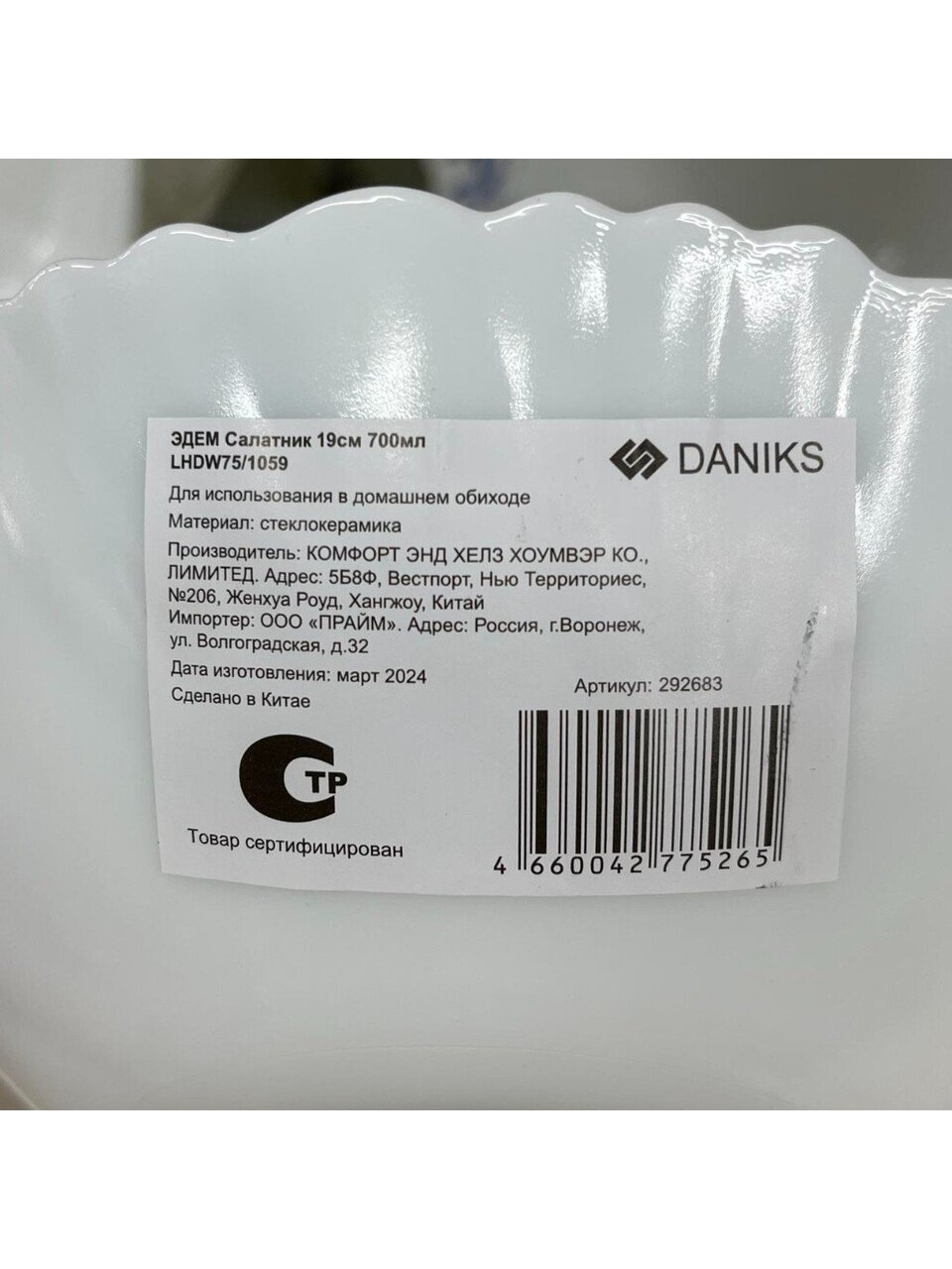 Салатник Daniks Эдем 0.7 л: стиль прованс, прочная стеклокерамика, оптимальный размер 19 см — решение для сервировки и хранения без лишних хлопот.