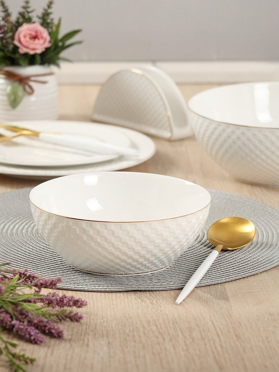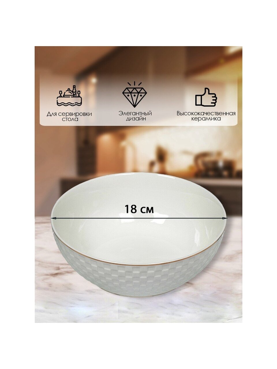- Элегантный дизайн с золотой окантовкой — акцент на премиальном внешнем виде, который выделяет салатник среди аналогов.