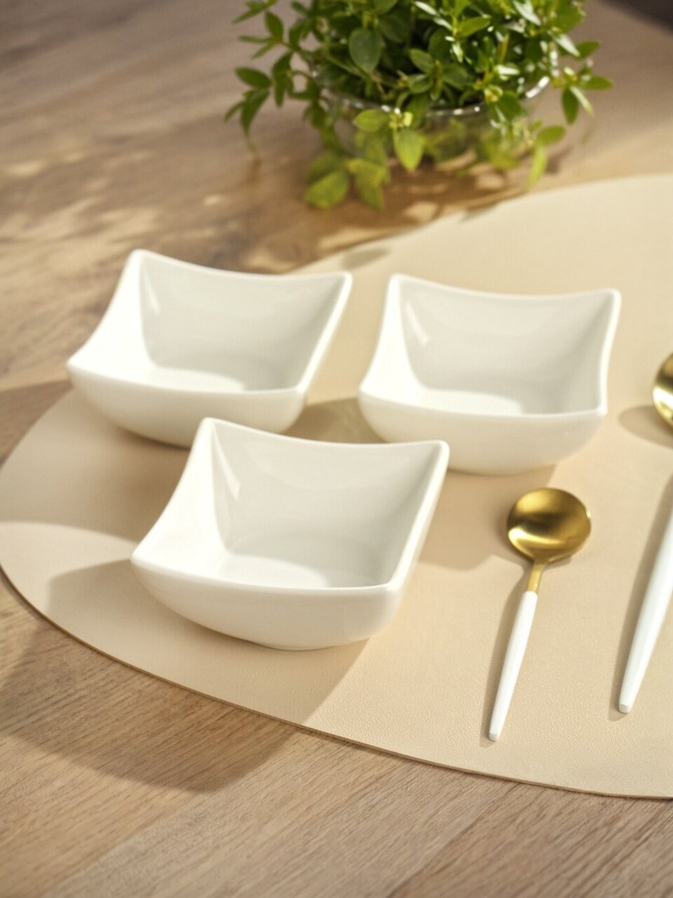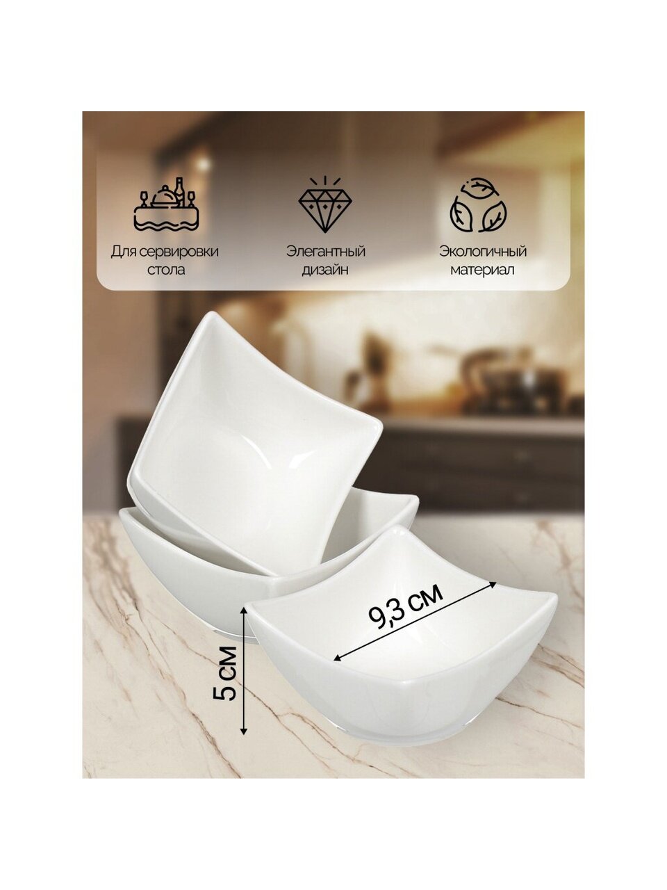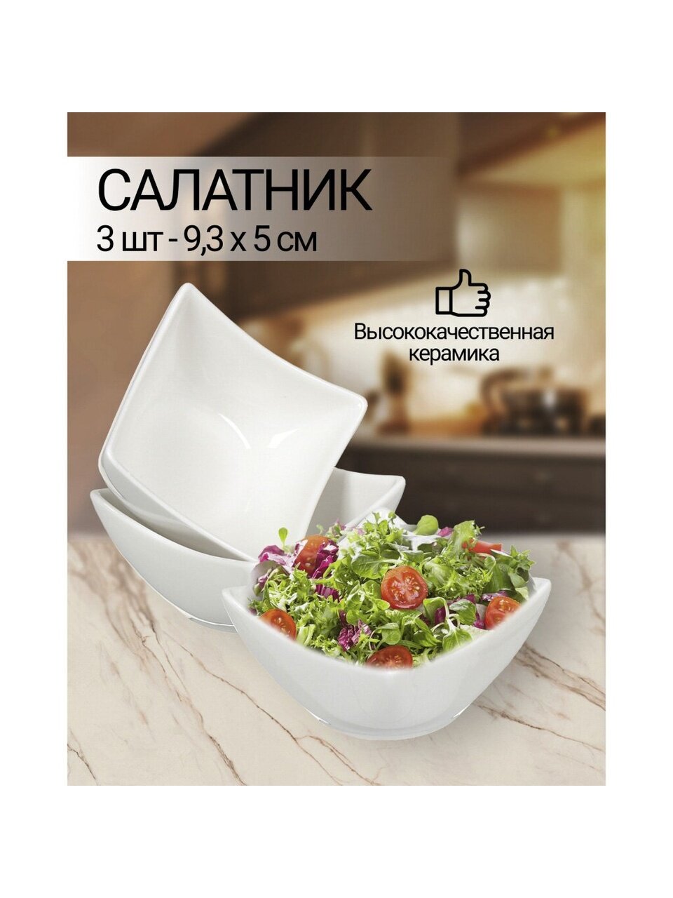Салатники керамические квадратные 3 шт. 9.3х5 см — стильный набор для сервировки, который решает вопрос удобства и эстетики на вашей кухне.