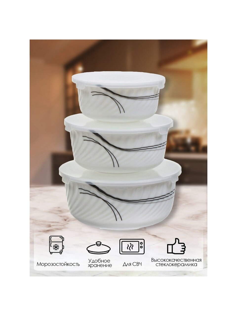 В отличие от пластиковых и металлических аналогов, стеклокерамика не впитывает запахи, устойчива к перепадам температуры и не выделяет вредных веществ при нагревании. Если вы ищете, какой салатник выбрать для микроволновки или как организовать хранение без пересыпания в другую посуду — этот набор отвечает всем современным требованиям. Белый цвет и лаконичный скандинавский дизайн с полосой гармонично впишутся в любой интерьер кухни.
