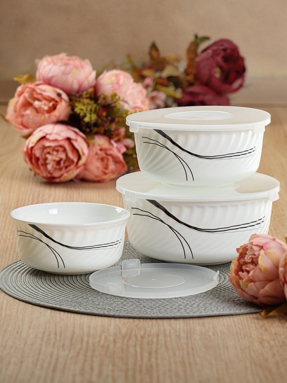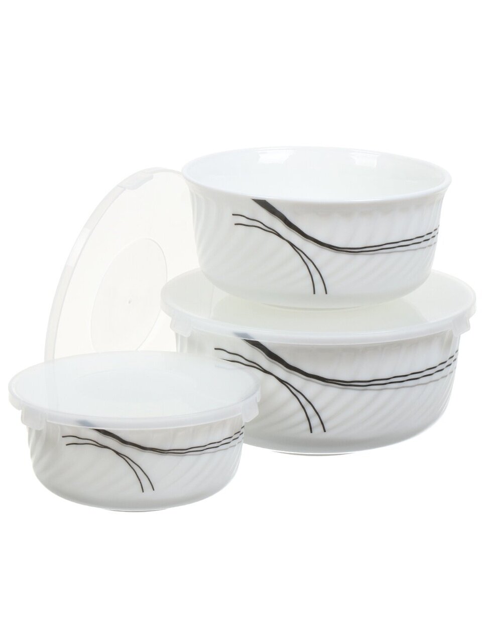 Салатники Daniks Tokyo из стеклокерамики: набор 3 размера с крышками для сервировки, хранения и подачи. Идеальный выбор для дома, дачи, подарка.