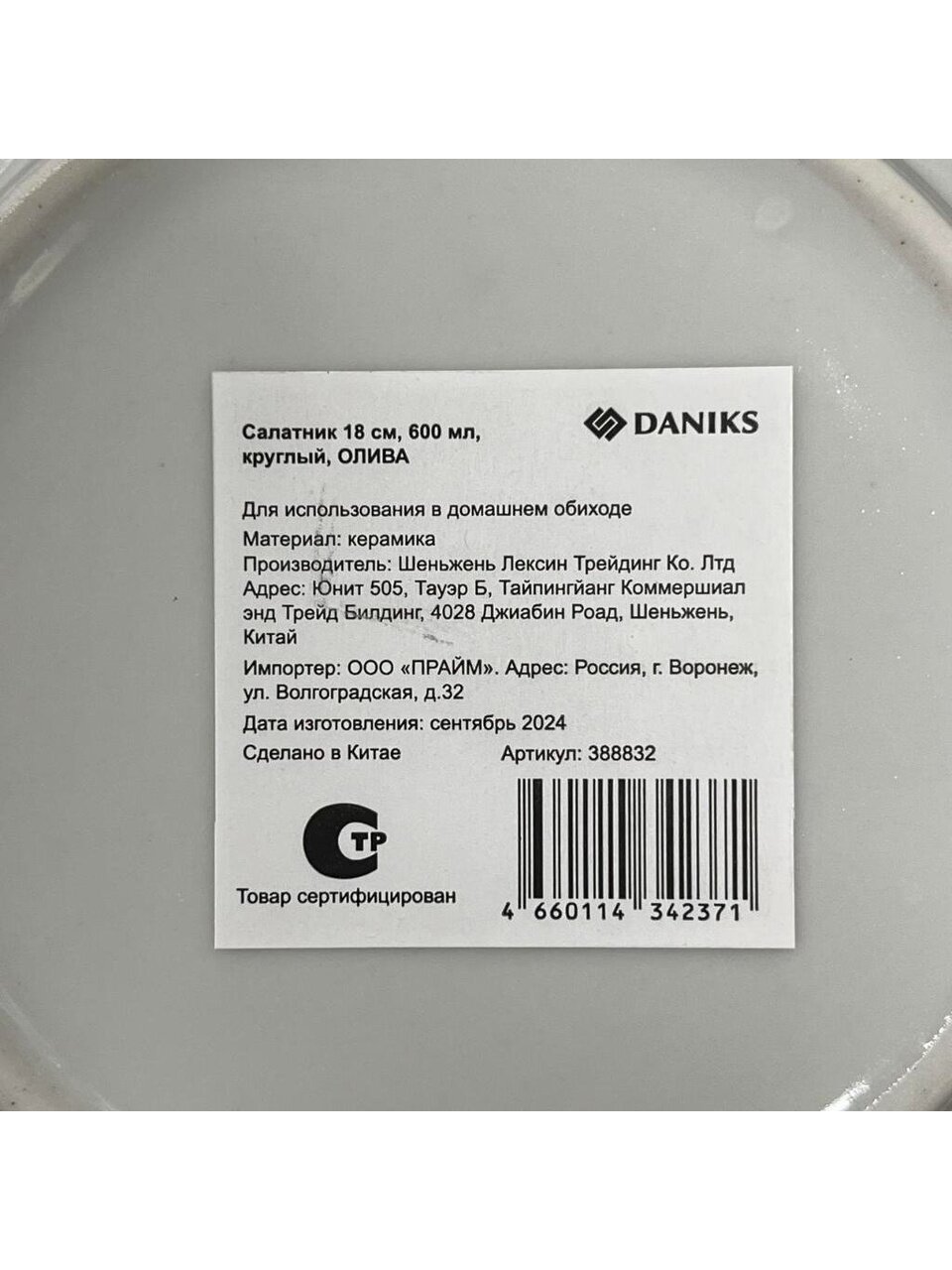 Салатник керамика Daniks Олива 0.6 л — стильное решение для сервировки, надёжный выбор для дома и дачи, подходит для микроволновки и посудомоечной машины.