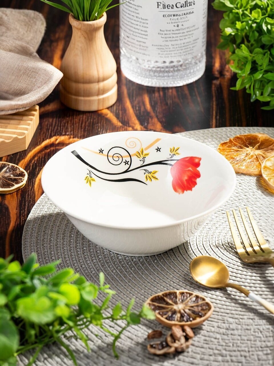 Керамический салатник Daniks из коллекции «Красный Тюльпан» — это универсальная посуда для сервировки салатов, закусок и фруктов. Благодаря диаметру 15 см и объёму 0,4 л, он идеально подходит для ежедневного использования и небольших компаний. Покупатели часто спрашивают: как выбрать салатник для дачи или что лучше для сервировки праздничного стола? Этот вариант сочетает прочность керамики, яркий рисунок с цветами и возможность мытья в посудомоечной машине, что экономит ваше время.