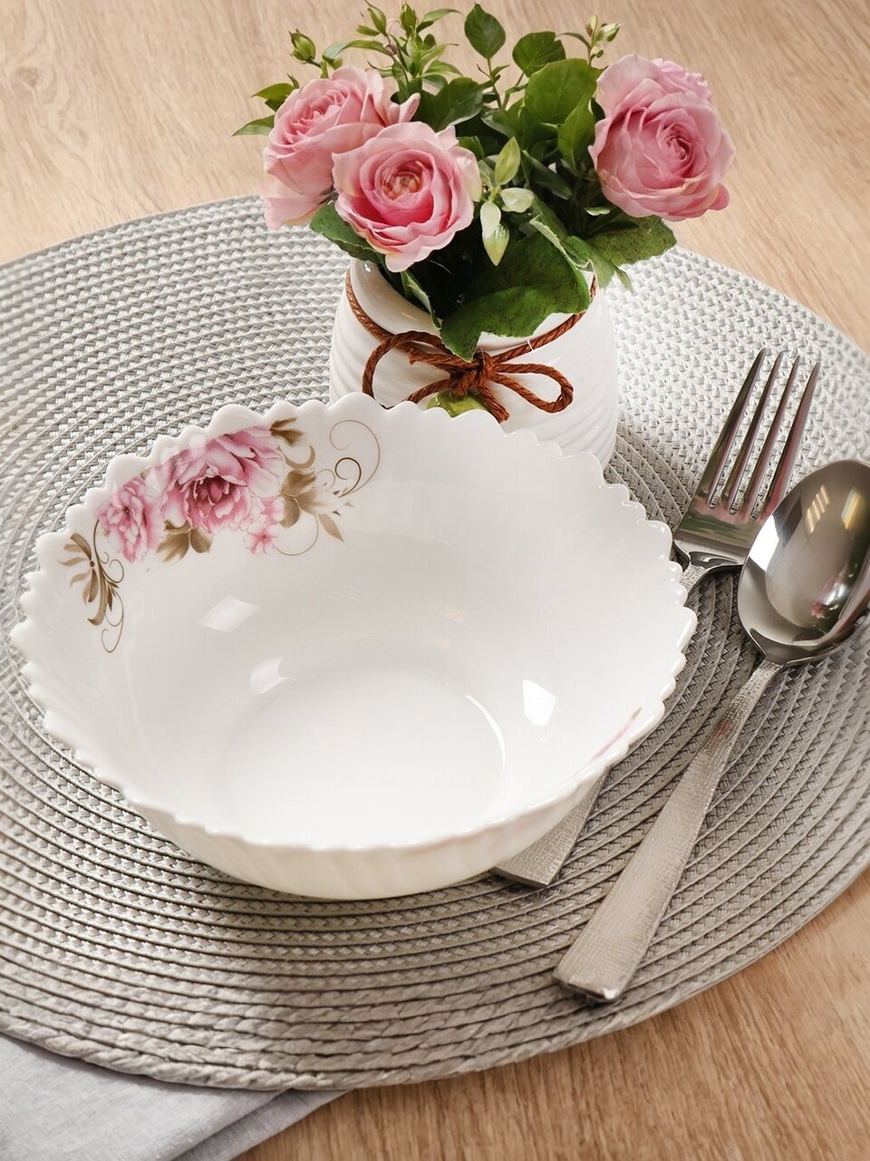 Салатник из стеклокерамики Daniks Анжелика 0.75 л: стиль прованс, прочность и удобство для сервировки, подходит для СВЧ и посудомоечной машины.