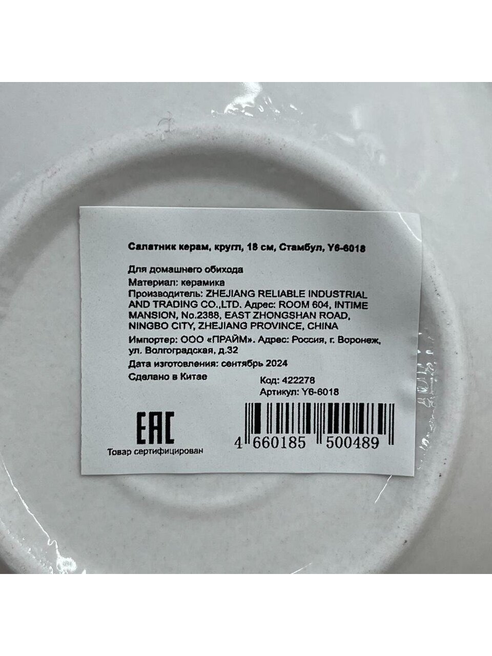 Вы можете приобрести «Салатник керамика, круглый, 18х7 см, Стамбул, Y6-6018» и другие товары в нашем интернет-магазине в Орле по низким ценам и с бесплатным самовывозом.