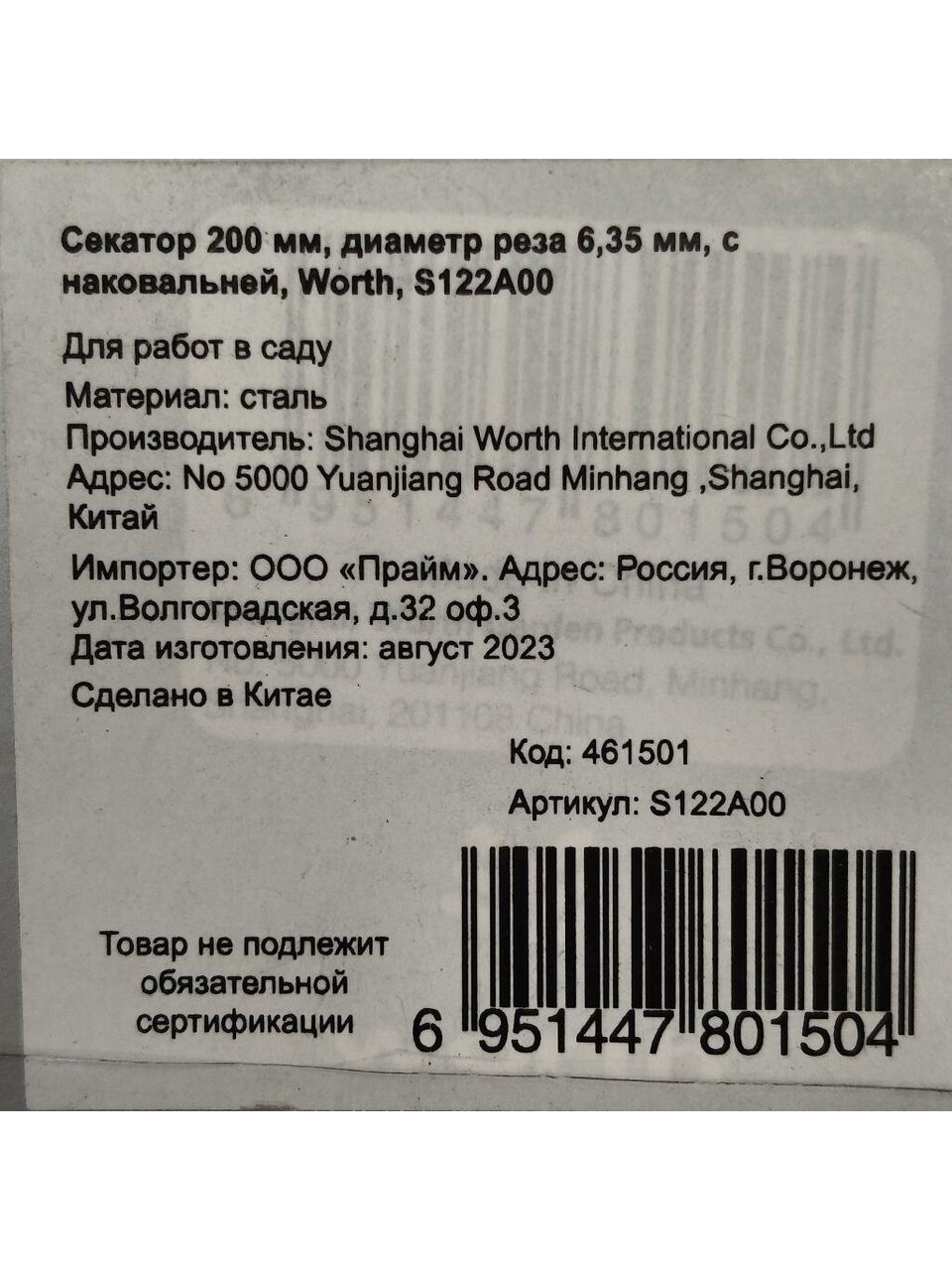 Вы можете приобрести «Секатор 200 мм, 6.35 мм, с наковальней, Worth, рукоятка пластик, S122A00» и другие товары в нашем интернет-магазине в Серпухове по низким ценам и с бесплатным самовывозом.