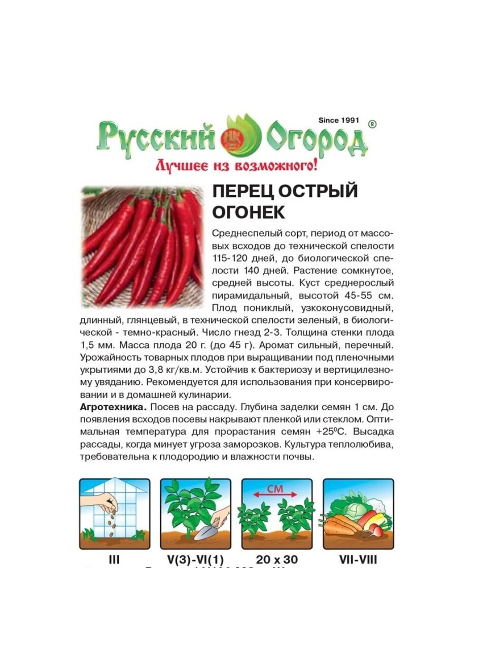Откройте для себя мир ярких вкусов с семенами перца острого "Огонек" от бренда "Русский огород". Эти семена позволят вырастить среднеспелый острый перец, который станет ярким акцентом в кулинарных шедеврах. Перец "Огонек" отлично подходит для любителей пикантных блюд и ценителей свежих овощей.