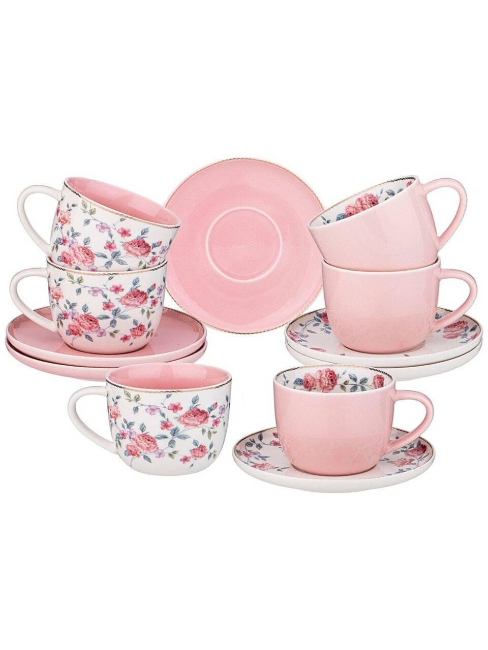 Чайный набор из фарфора на 6 персон Lefard Blossom — стильный подарок и изысканное решение для уютных чаепитий. 12 предметов, цветочный декор и подарочная упаковка.