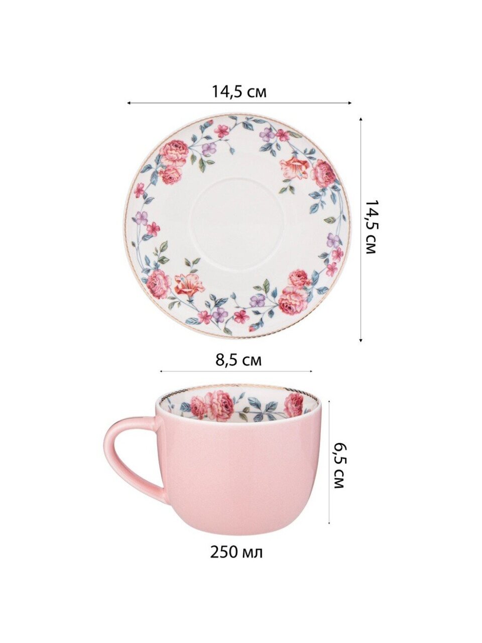 - Фарфор высокого качества, объём чашек 250 мл, рассчитан на 6 персон — удобно для семьи или гостей