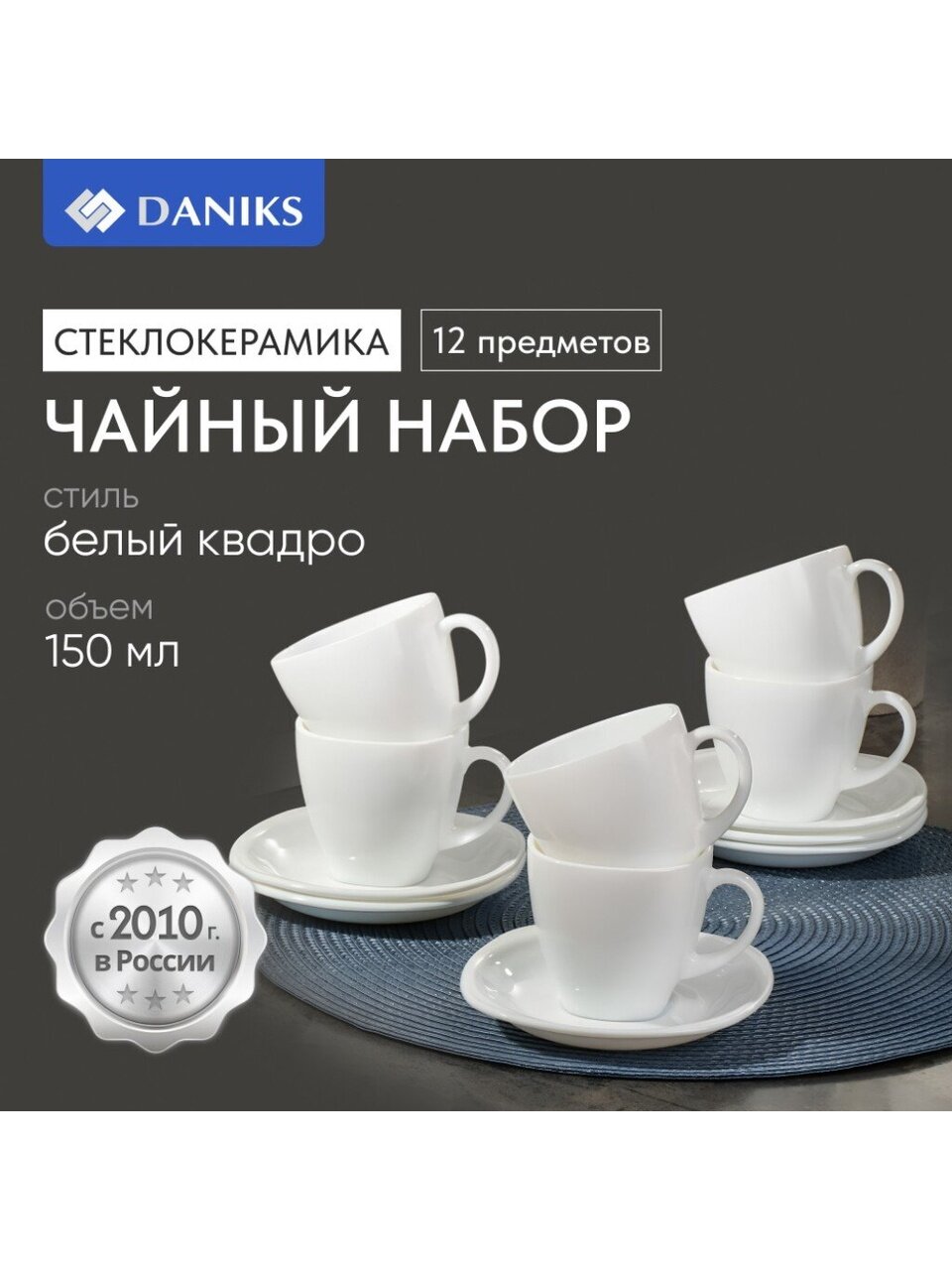 Вы можете приобрести «Набор чайный стеклокерамика, 12 предметов, на 6 персон, 150 мл, Daniks, Белый Квадро, FKFB-210, подарочная упаковка» и другие товары в нашем интернет-магазине в Коврове по низким ценам и с бесплатным самовывозом.
