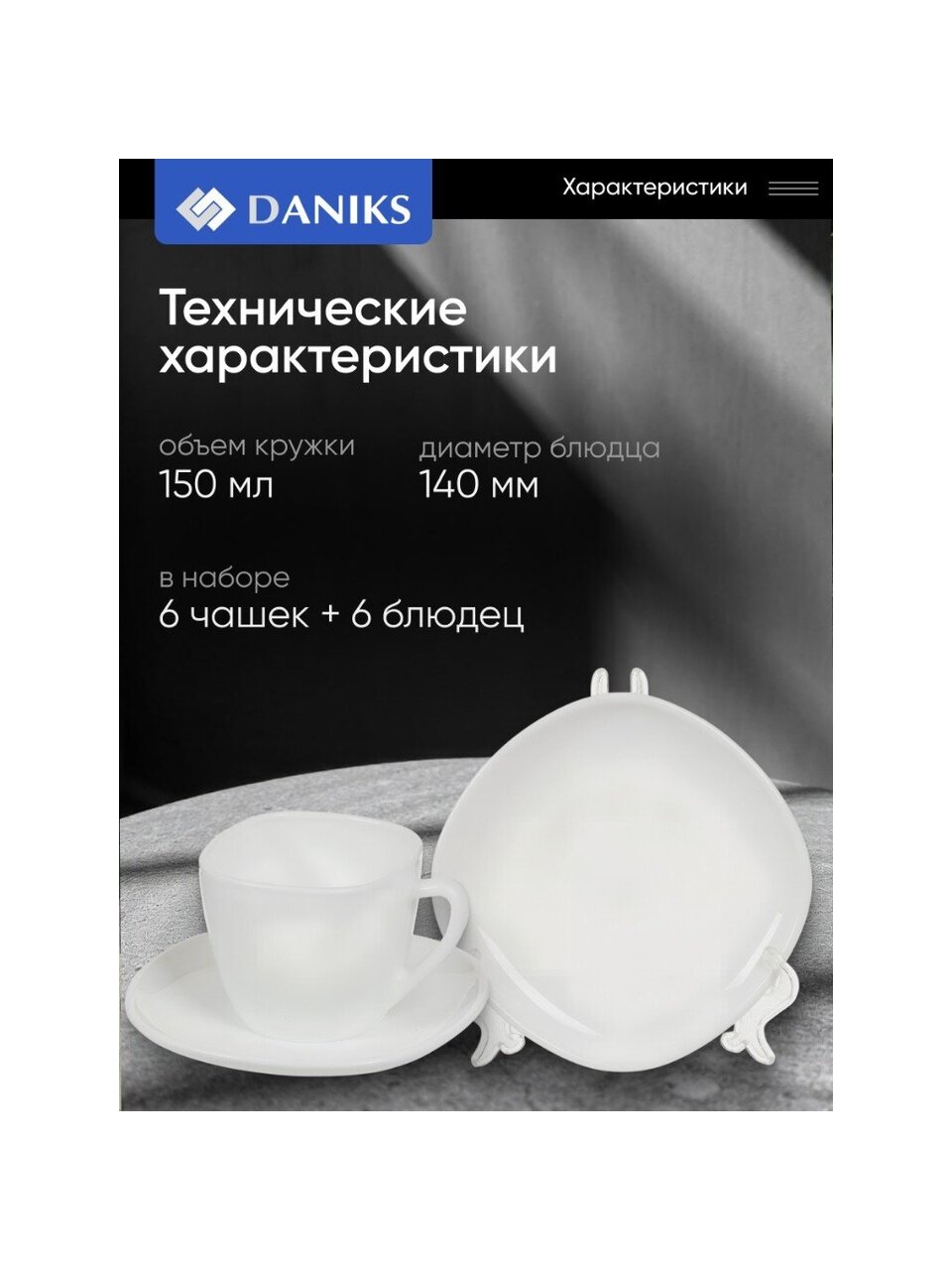 - В комплекте: 12 предметов — 6 чашек и 6 блюдец.