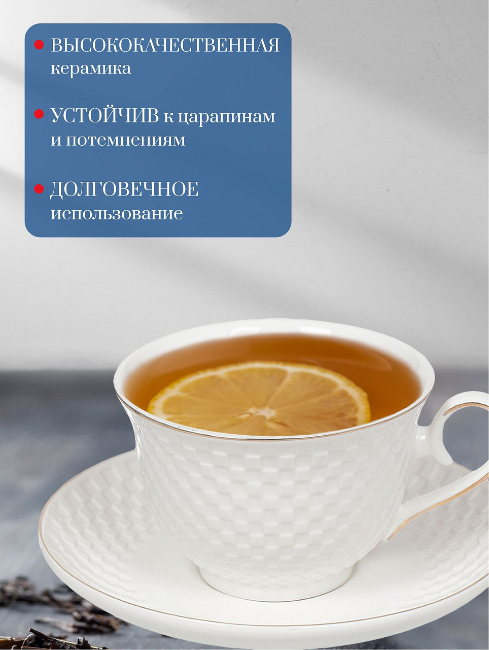 Чайный набор Daniks Кембридж на 6 персон — элегантный подарок и стиль для вашего дома: 12 предметов, керамика с золотой каймой, в подарочной упаковке