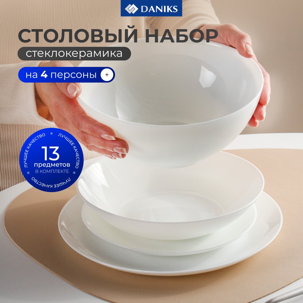 Столовый сервиз Daniks Бэль-2 на 4 персоны: 13 предметов из прочной стеклокерамики — для стильной сервировки дома, дачи или подарка.