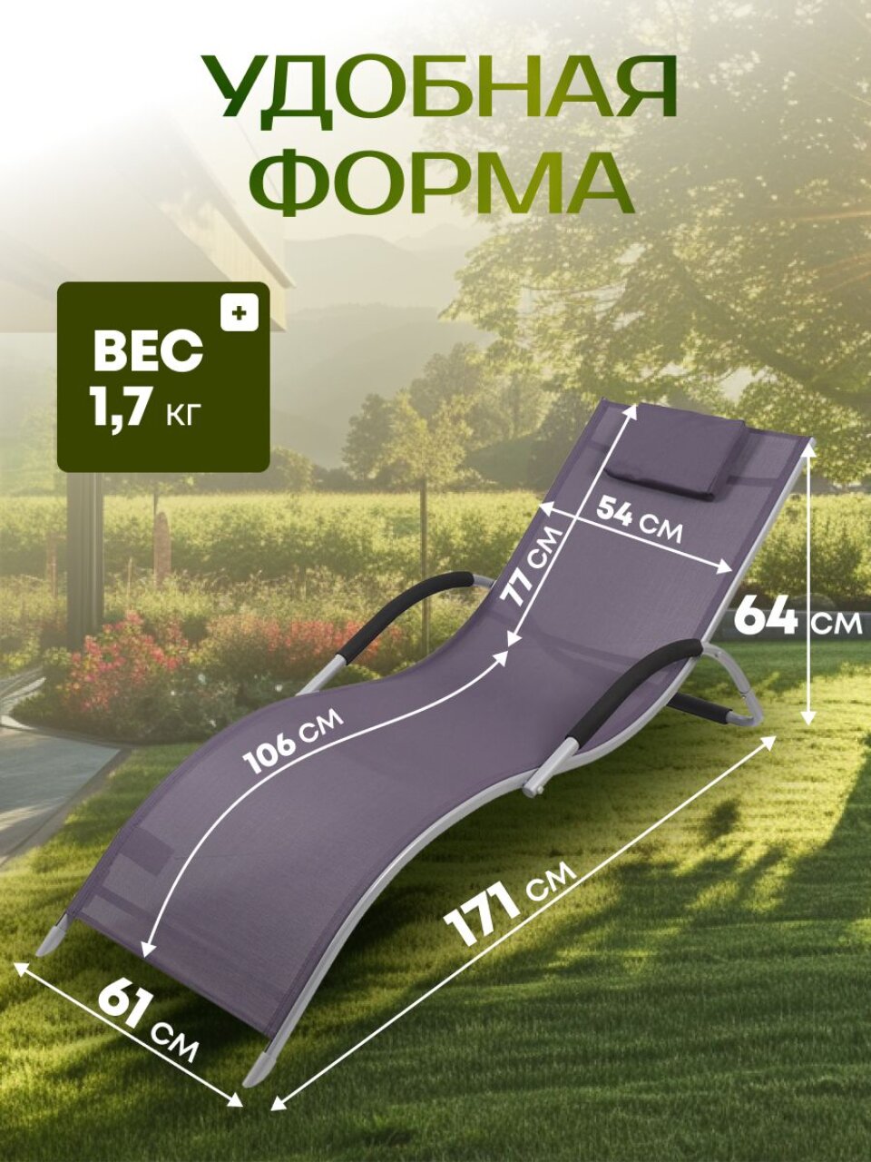 Вы можете наслаждаться комфортом и расслаблением используя этот прочный и удобный лежак, который не требует времени на сборку и разборку.