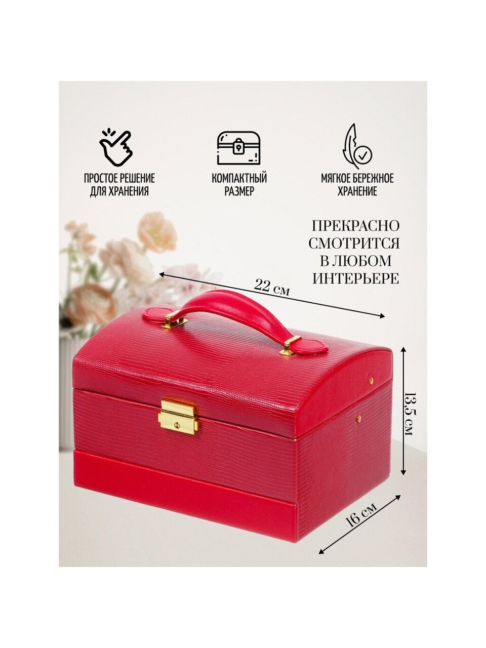 Вы можете приобрести «Шкатулка-кейс для украшений и косметики, 22х16х13.5 см, красная, Y4-5143» и другие товары в нашем интернет-магазине в Тамбове по низким ценам и с бесплатным самовывозом.