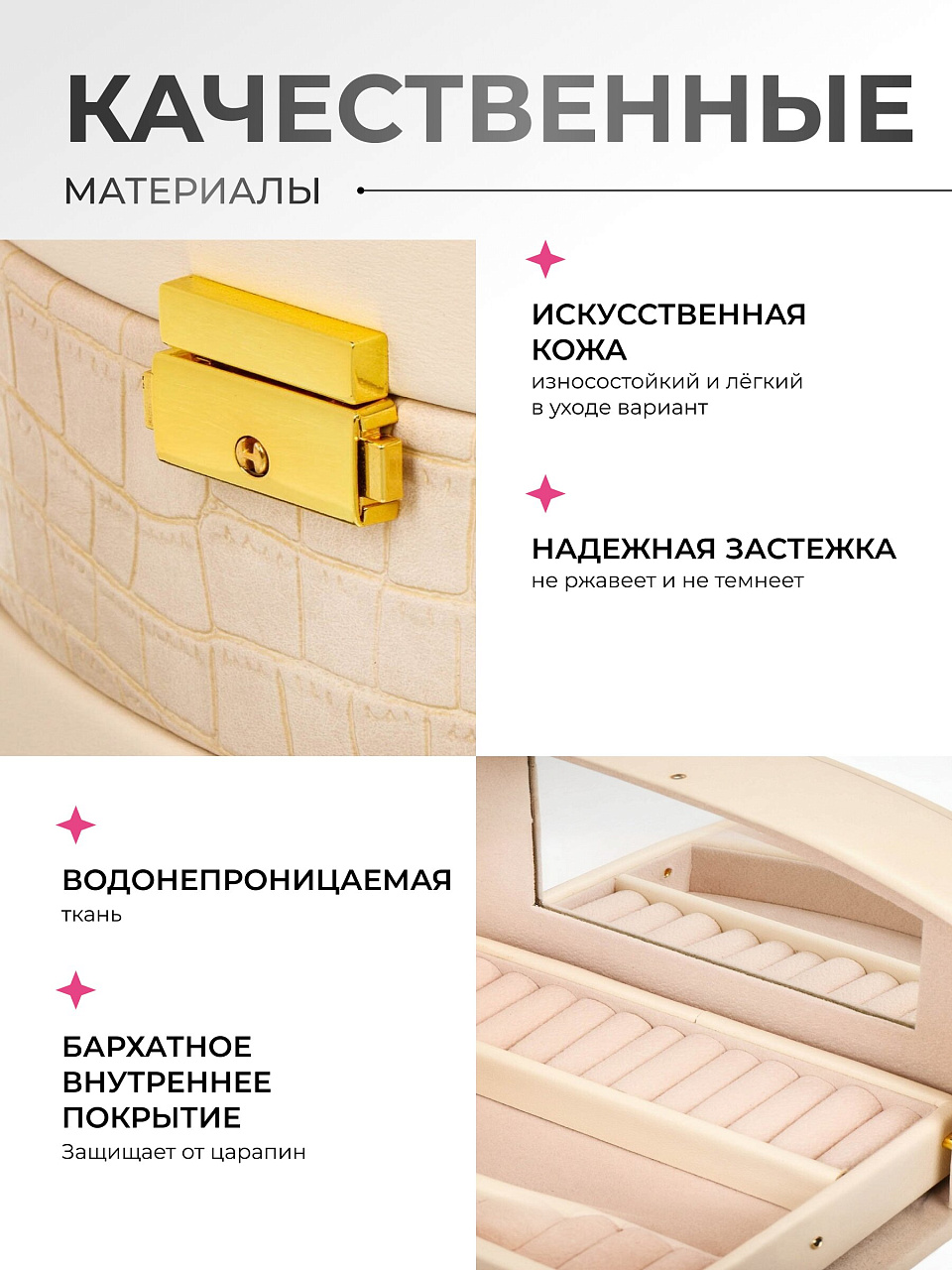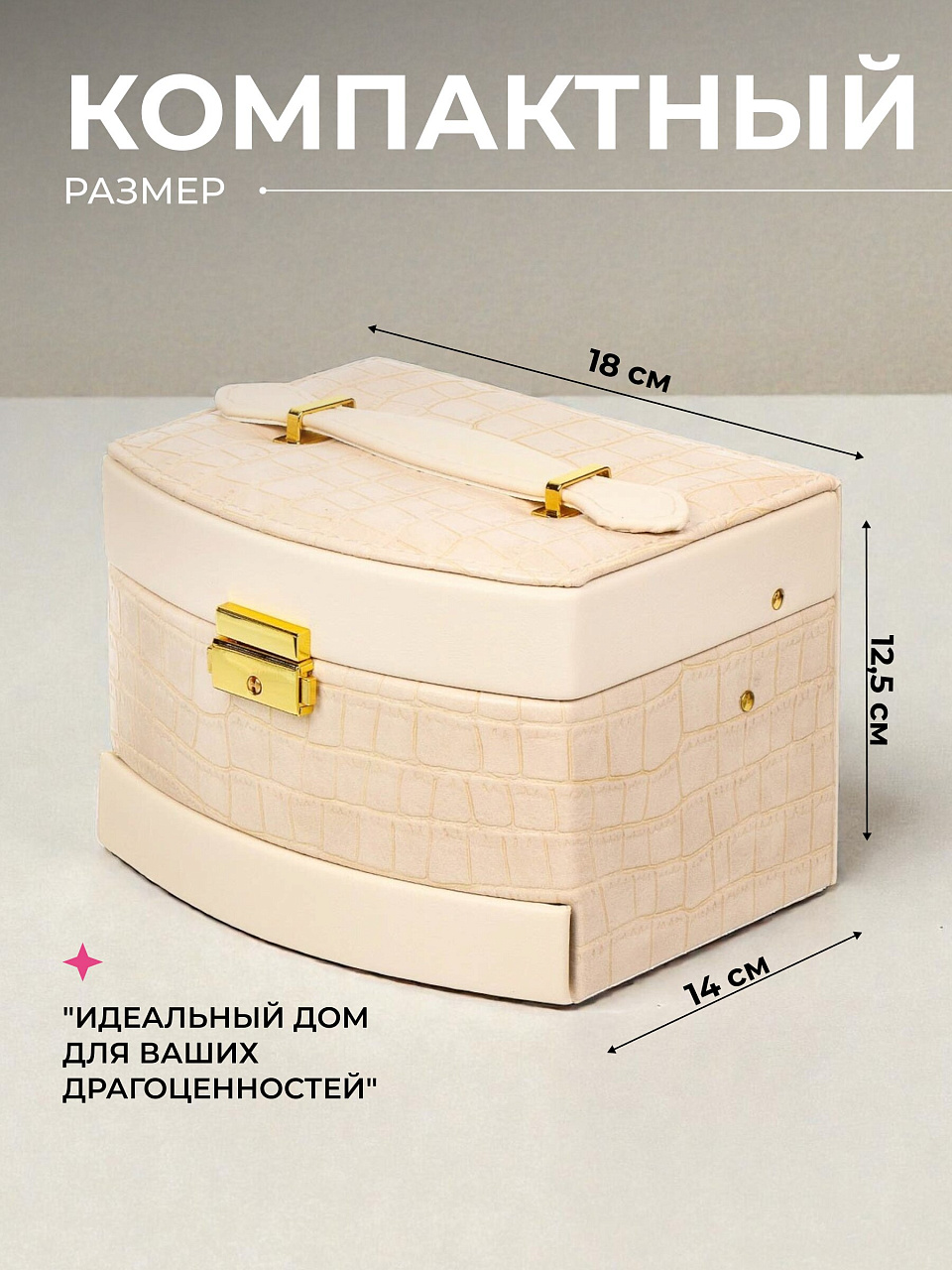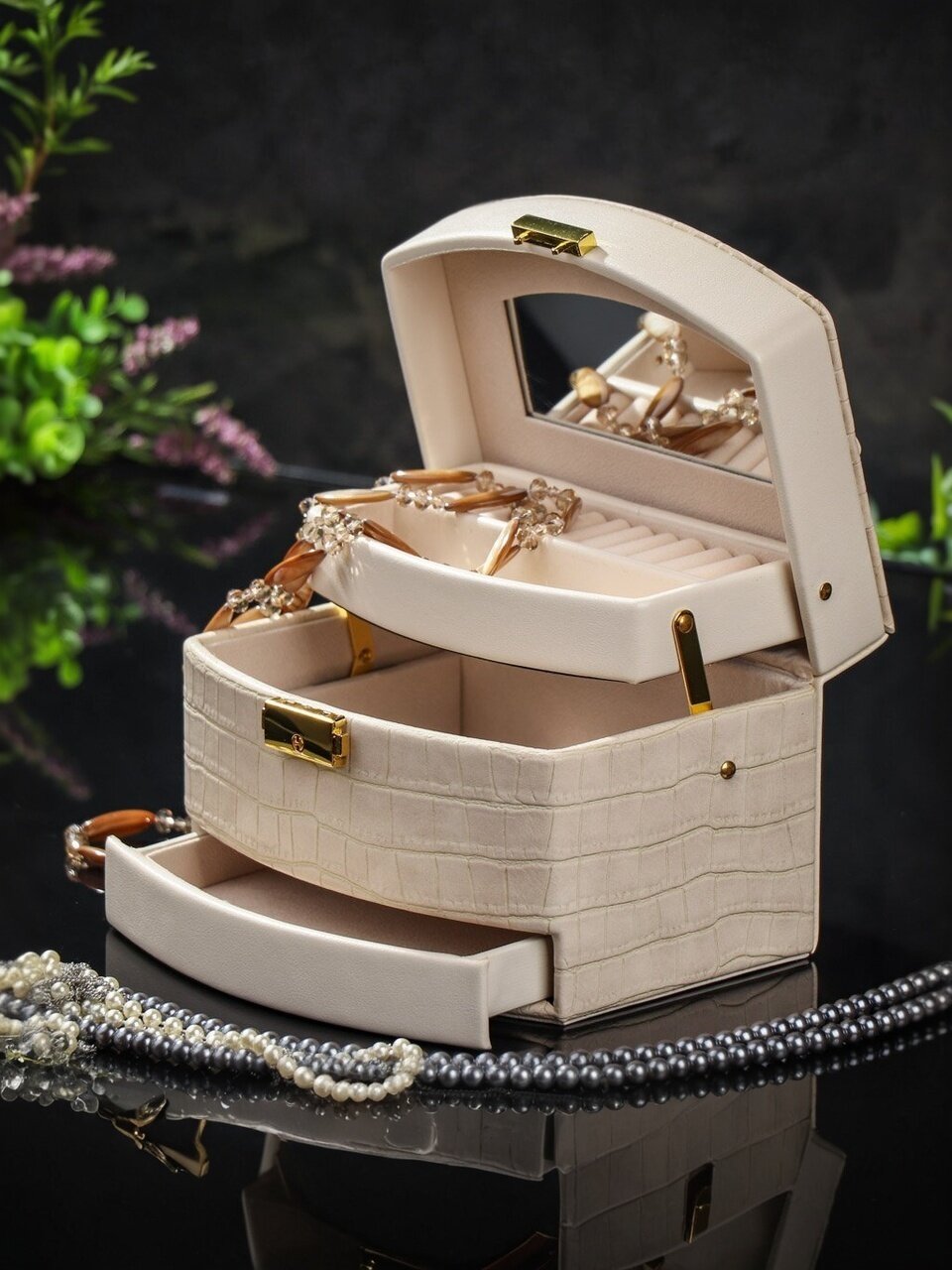 - Шкатулка соберет все украшения в одном место и организует удобное хранение;