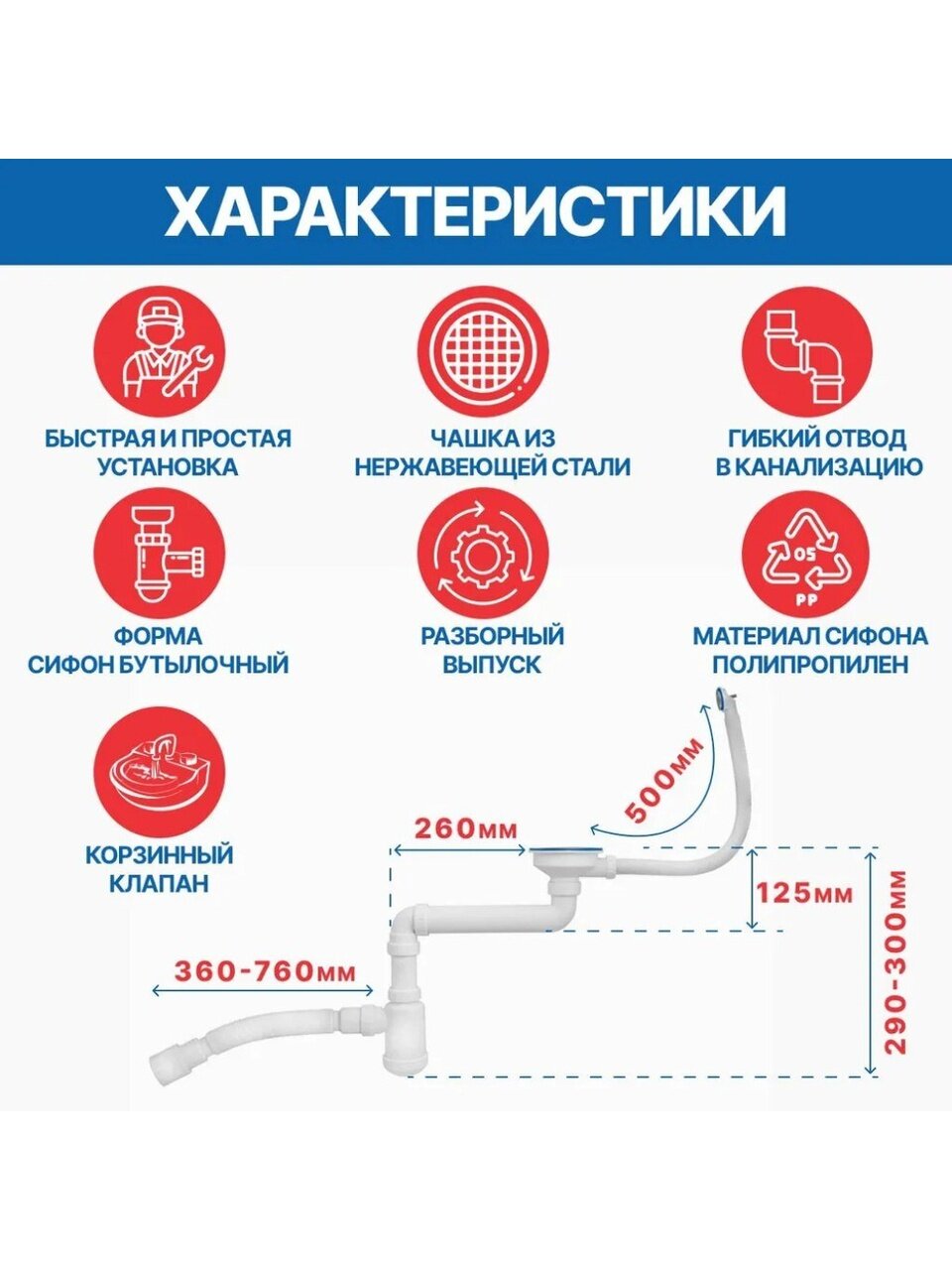 - Сифон выполнен из первичного полипропилена, что гарантирует высокую прочность, надежность и долговечность изделия.
