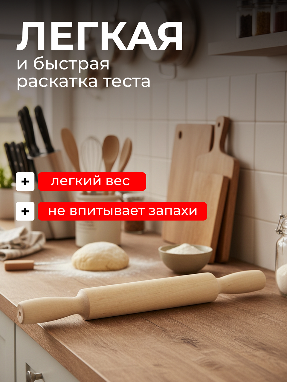 - Деревянная поверхность не скользит в руках, что облегчает работу с тестом.