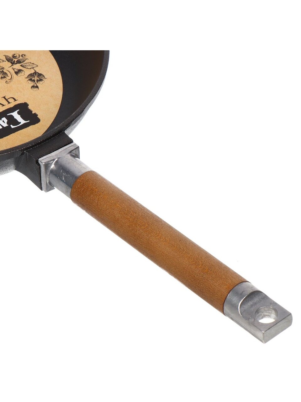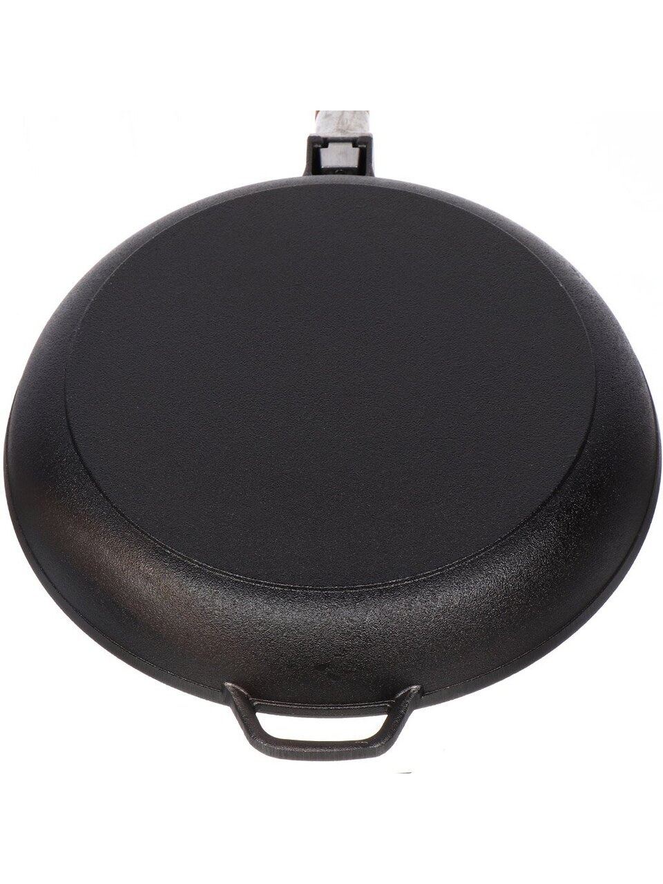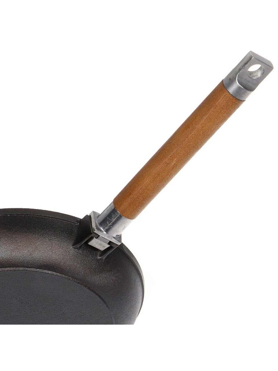 Съемная деревянная ручка позволяет использовать сковороду не только на плите, но и в духовке, брать на природу или компактно хранить. Это удобно для жарки, запекания и транспортировки.