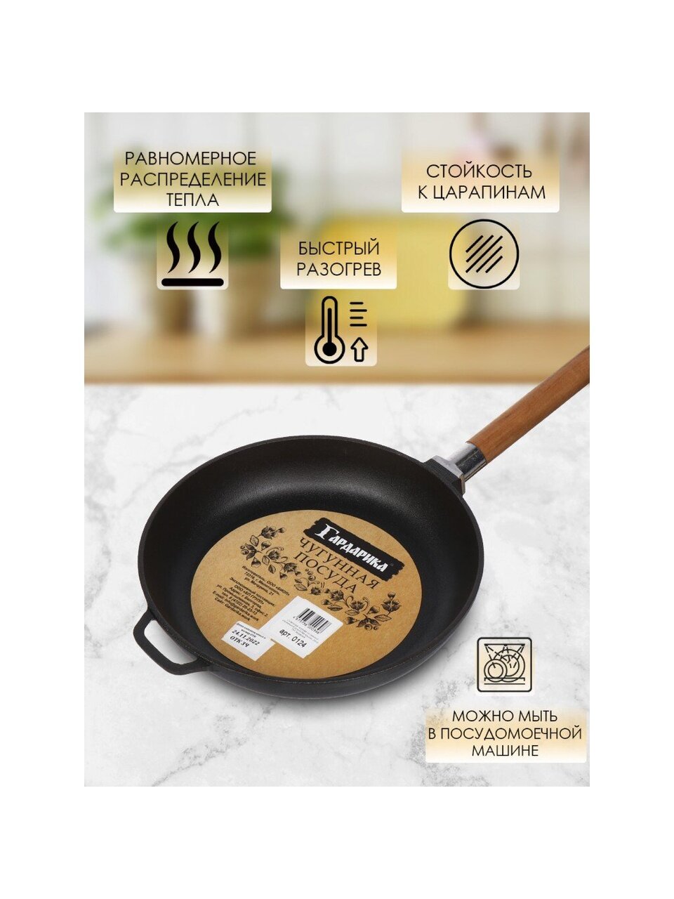 Преимущества чугунной сковороды Гардарика — в универсальности, прочности и экологичности. Она прослужит десятки лет, подходит для всех сценариев: домашняя кухня, дача, подарок ценителям натуральной посуды. Закажите сковороду Гардарика — получите выгодные условия, гарантию 12 месяцев и экспертную консультацию по уходу.