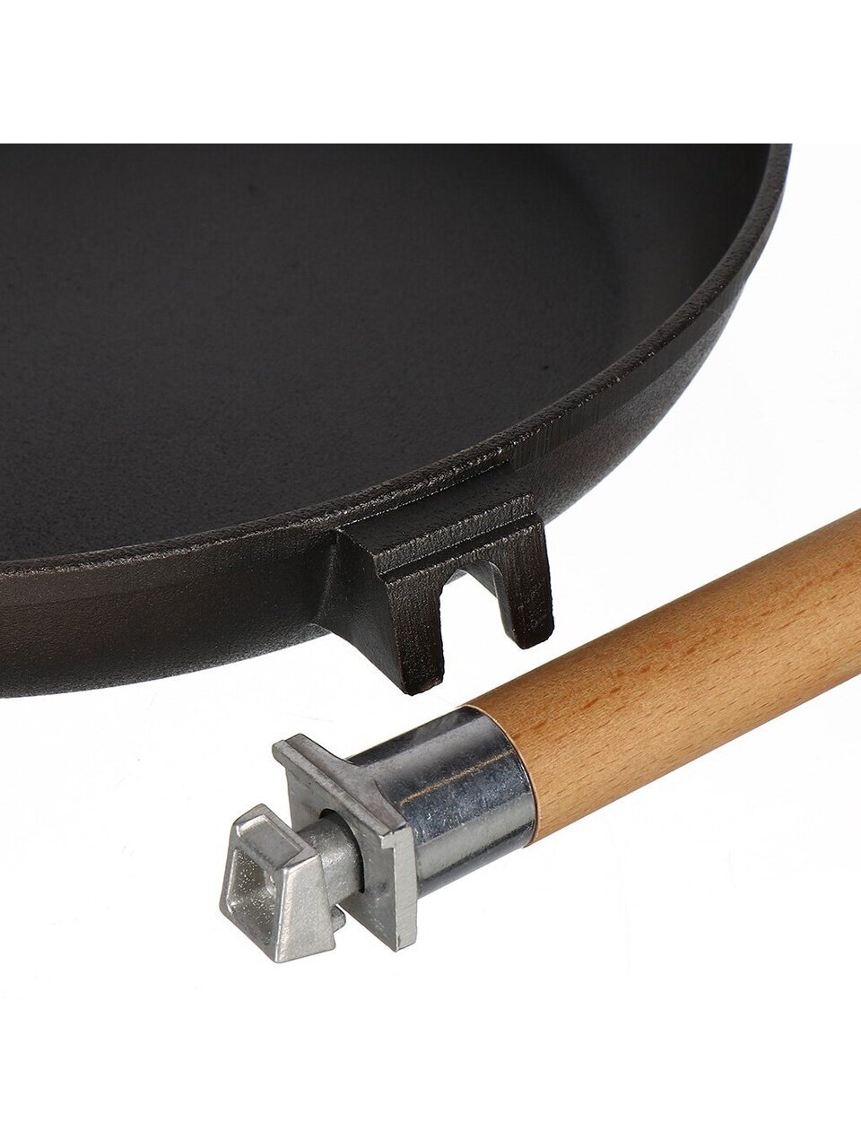 Чугунная сковорода Гардарика 24 см со съемной деревянной ручкой — универсальное решение для индукции, дачи и дома. Прочная, долговечная, без покрытия.