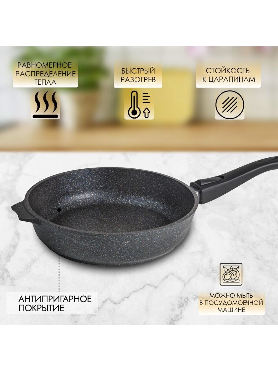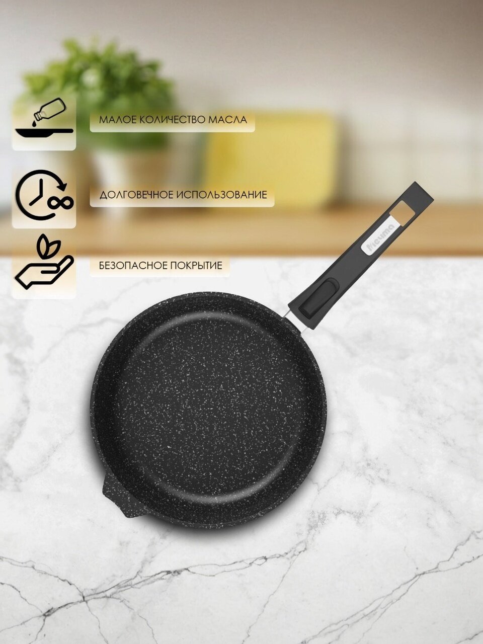 Сковорода литой алюминий 20 см Мечта Гранит black: надежное антипригарное покрытие, съемная ручка, оптимальный размер для дома и дачи — готовьте легко и без лишних хлопот.