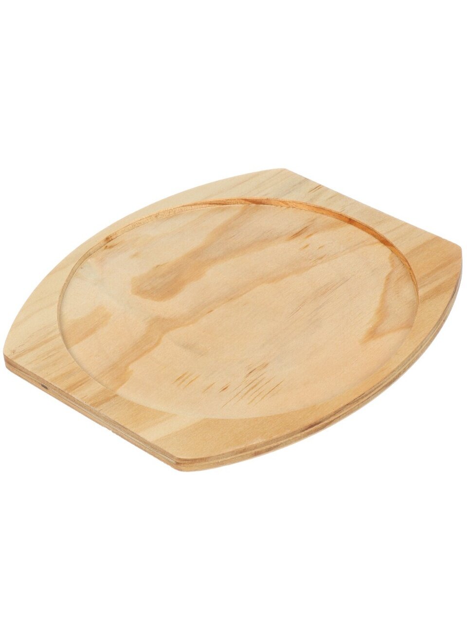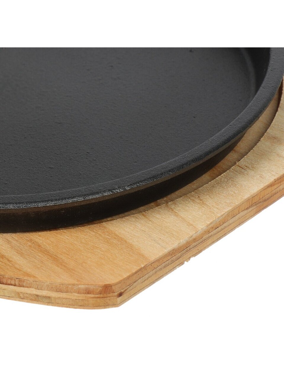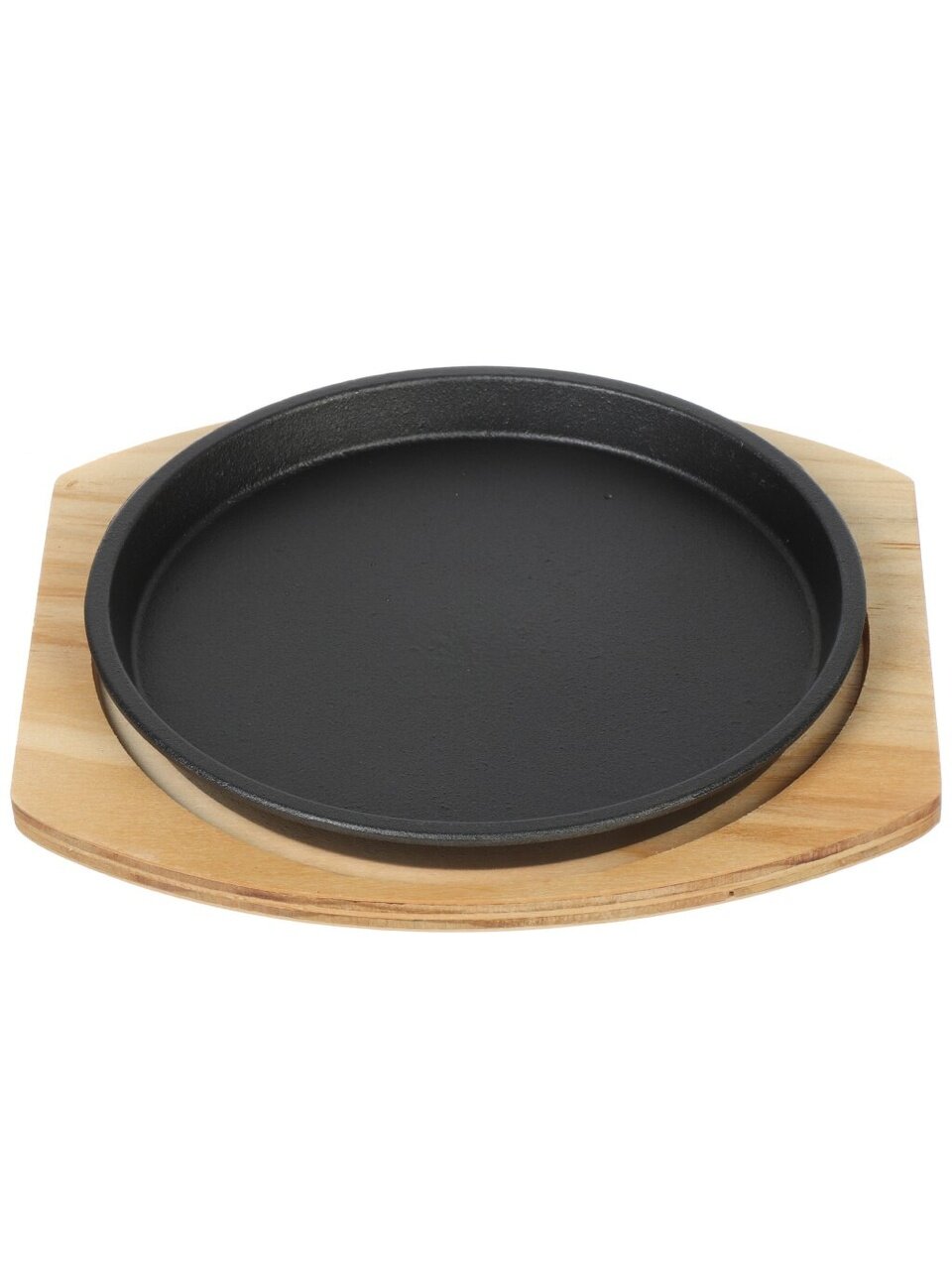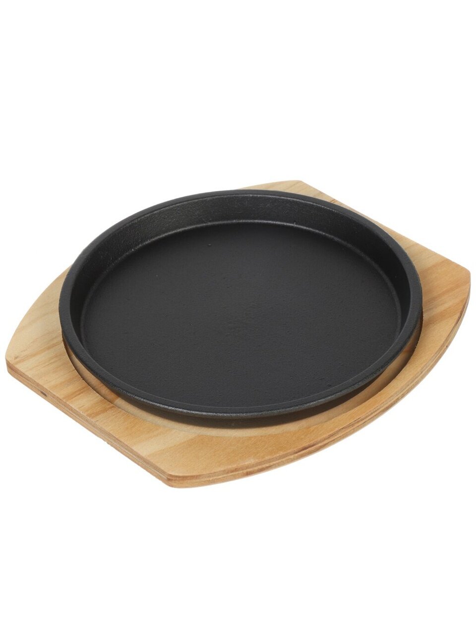 Сковорода круглая, диаметр 21,5 см, высота борта 2 см, диаметр дна 20 см, толщина дна 3,5 мм, толщина стенок 3 мм. В комплекте бамбуковая подставка. Крышка и съемная ручка не предусмотрены.