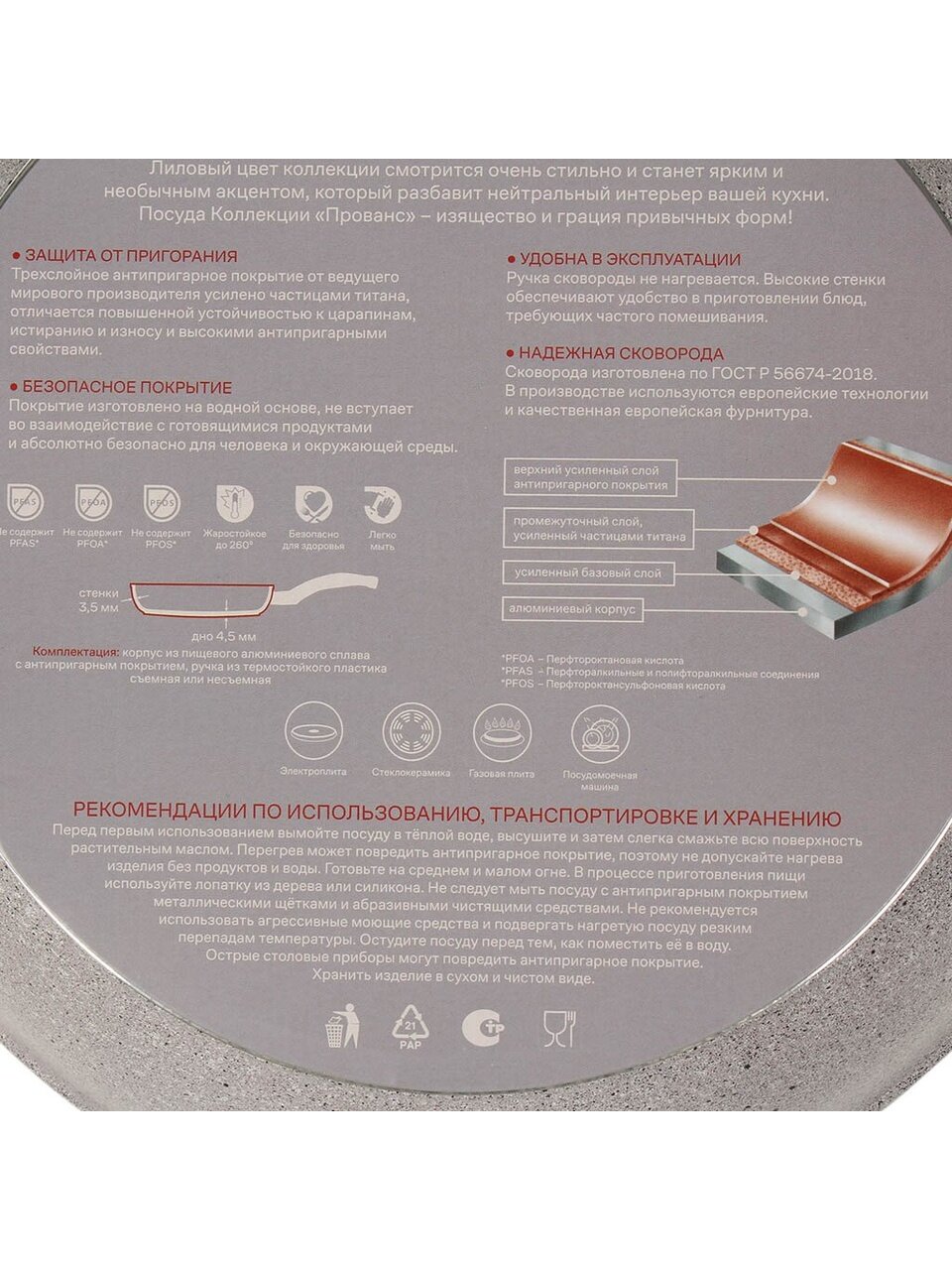 Вы можете приобрести «Сковорода алюминий, 28 см, антипригарное покрытие, Vari, Прованс, серо-сиреневый камень, PRV30128» и другие товары в нашем интернет-магазине в Старом Осколе по низким ценам и с бесплатным самовывозом.