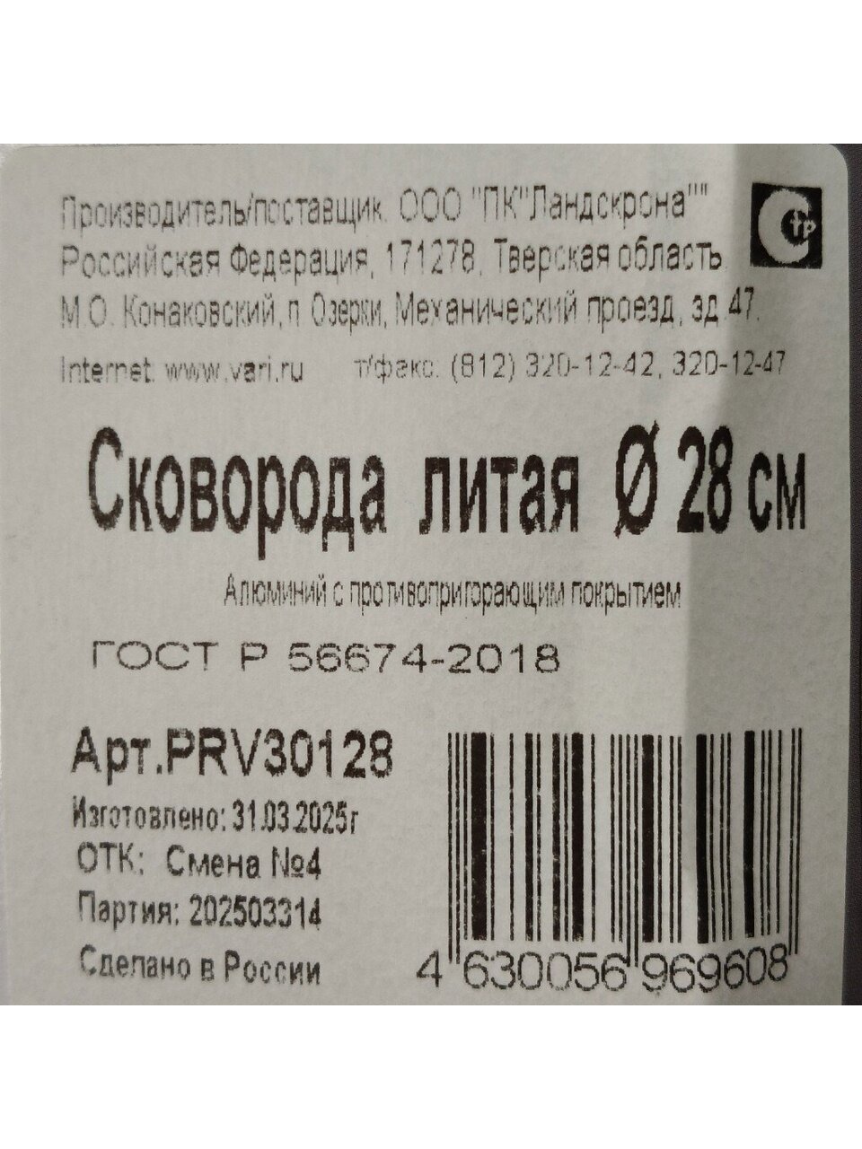 - Оптимальный размер 28 см и толщина дна 4,5 мм для равномерного прогрева и жарки больших порций