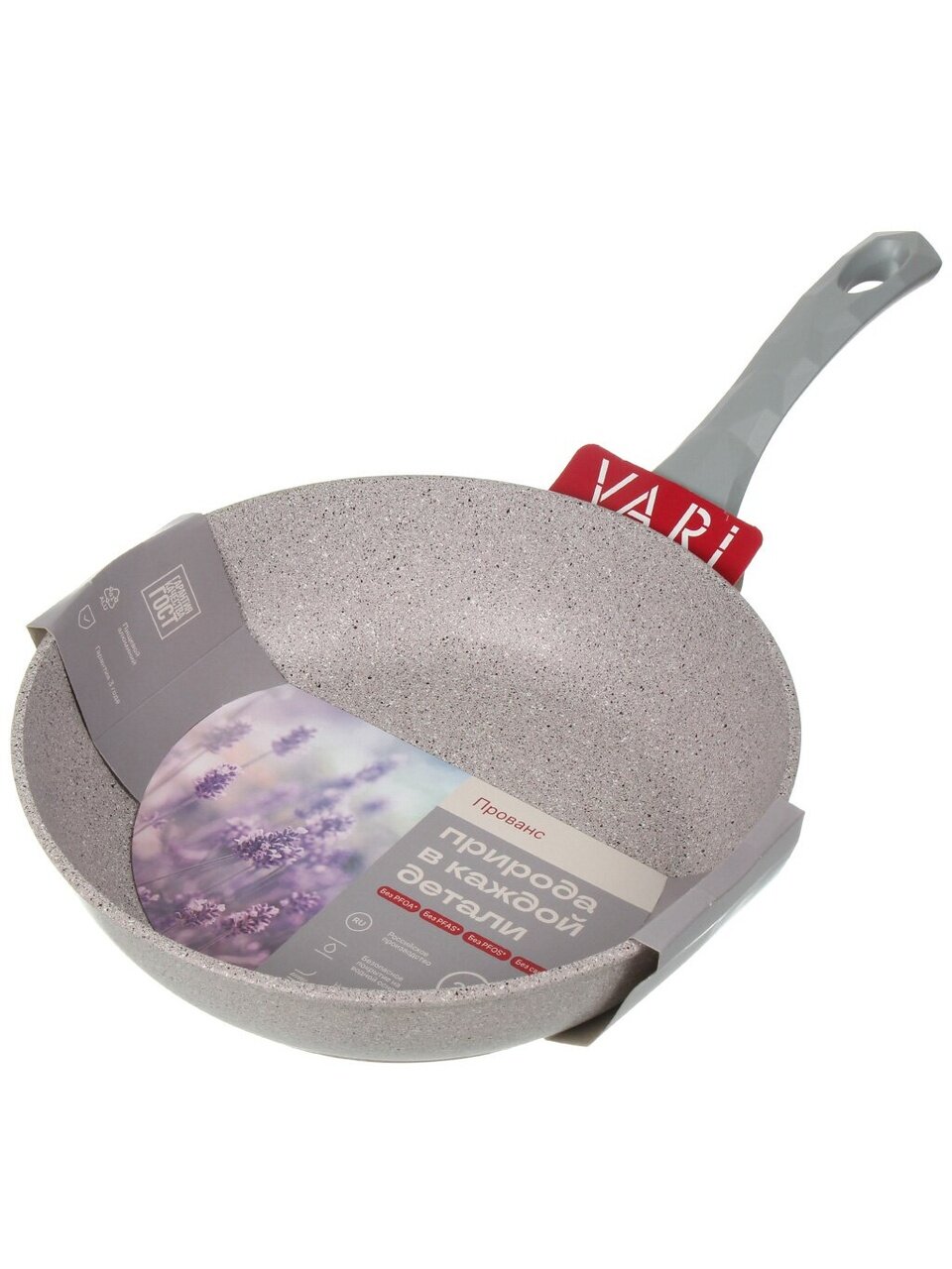 Сковорода Vari Прованс 28 см: антипригарное гранитное покрытие, долговечный алюминий, стиль «серо-сиреневый камень» — идеальный выбор для быстрой и здоровой готовки.